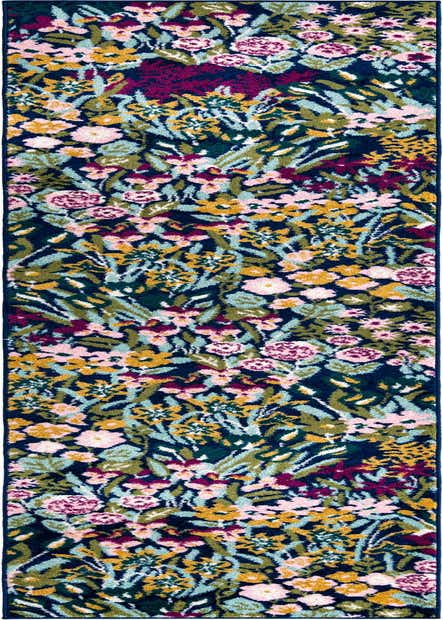 Primary color is Multi. Colors in this rug include: Multi, Green, Ivory, Light Blue, Navy Blue, Purple, Yellow, Pink, Teal.