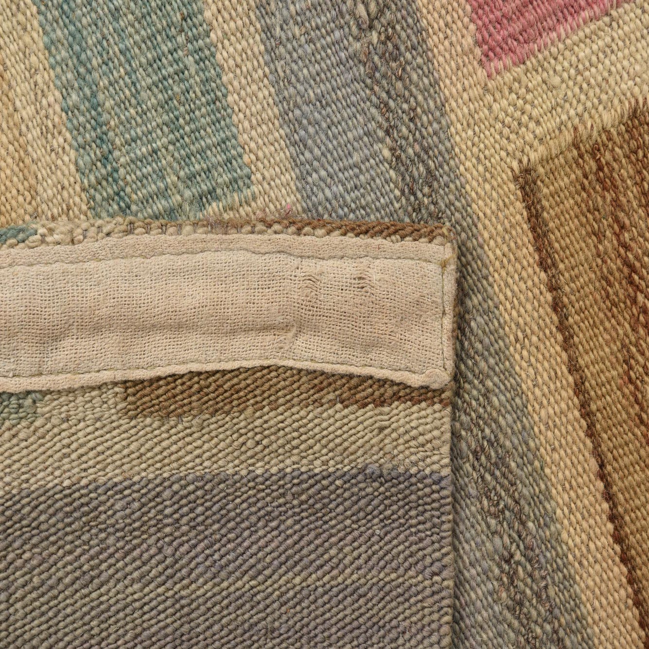 This handwoven runner from the Kilim Modern collection presents a harmonious blend of contemporary design and traditional craftsmanship. Its 12-foot length is accentuated by a pattern of horizontal bars in a color palette of beige, blue, brown, light blue, light brown, pink, and gray, set against a vivid multicolored background. The textural richness of 100% wool construction offers both tactile appeal and lasting durability.