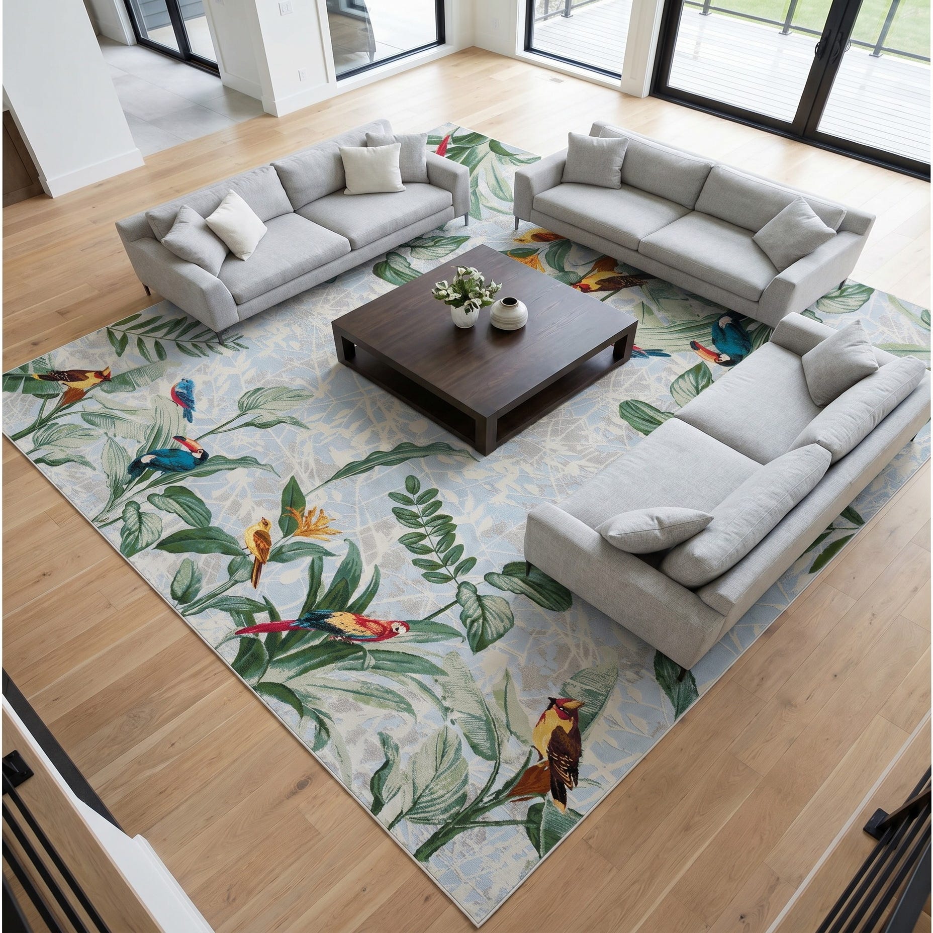 12' x 12' Easy-Clean Botanical Indoor / Outdoor Square Rug