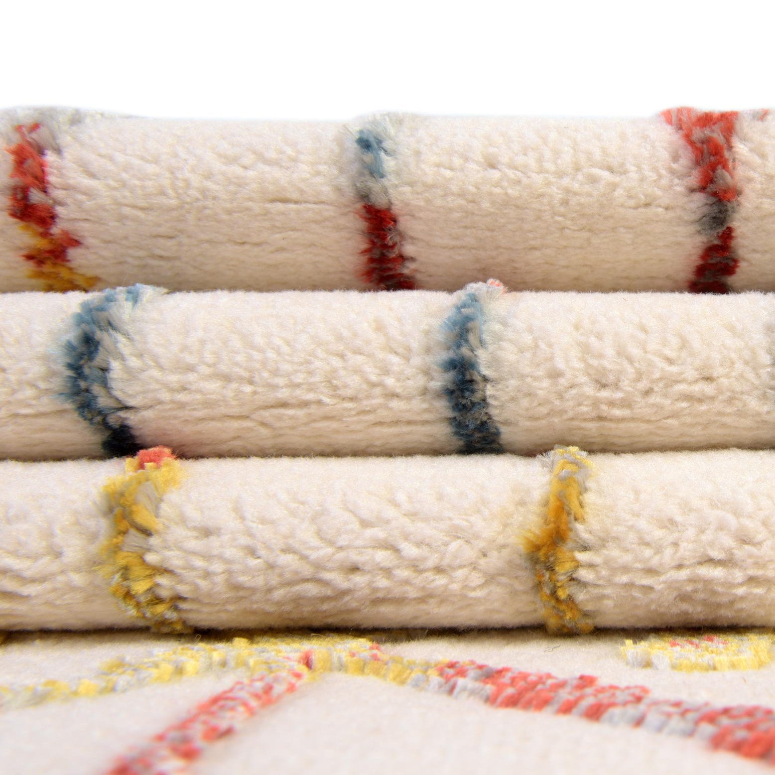 This runner works well where a linear pattern can lead the eye—hallways, entryways and galley kitchens—and pairs nicely with light or medium wood floors. It complements modern, Scandinavian and eclectic interiors, and adds a cheerful touch to coastal or transitional rooms; it also layers well in kids’ or play areas when you want color and pattern without overpowering the space.