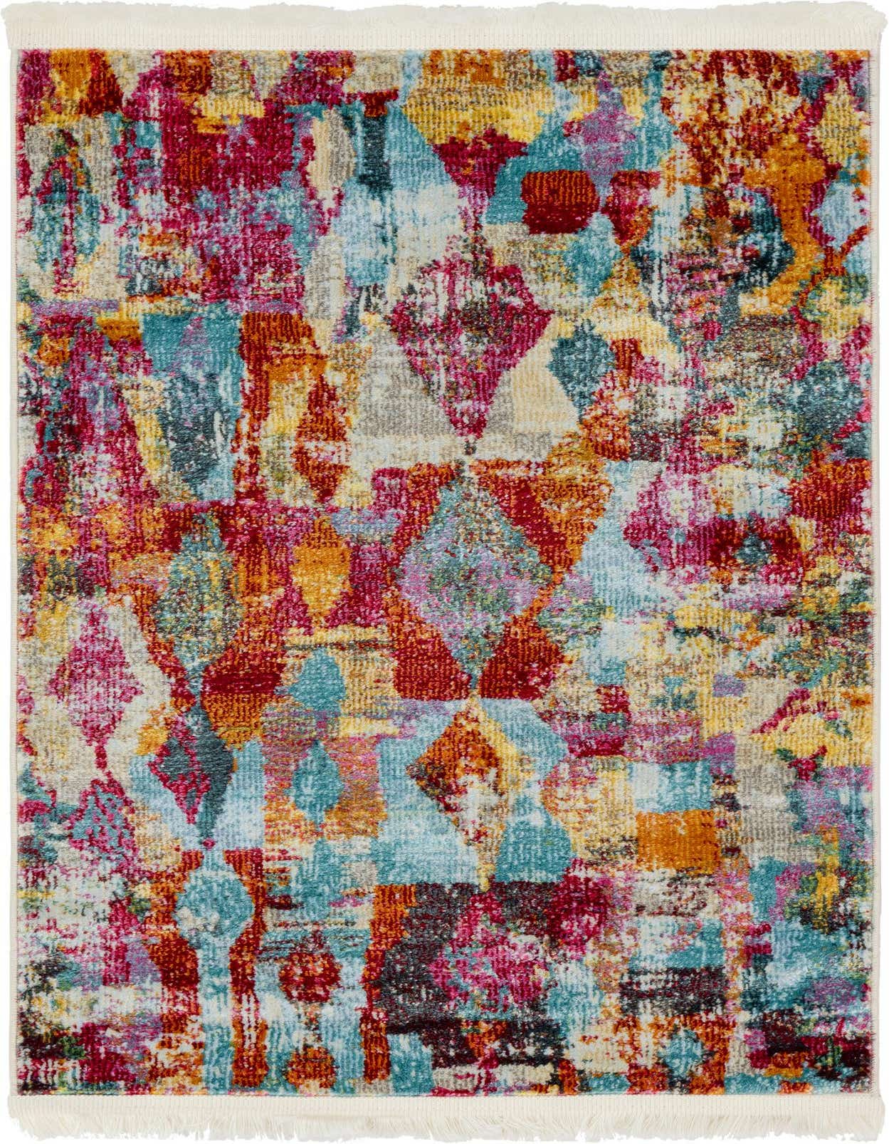 Primary color is Multi. Colors in this rug include: Multi, Blue, Gold, Orange, Purple, Red, Teal, Violet, Beige, Ivory.