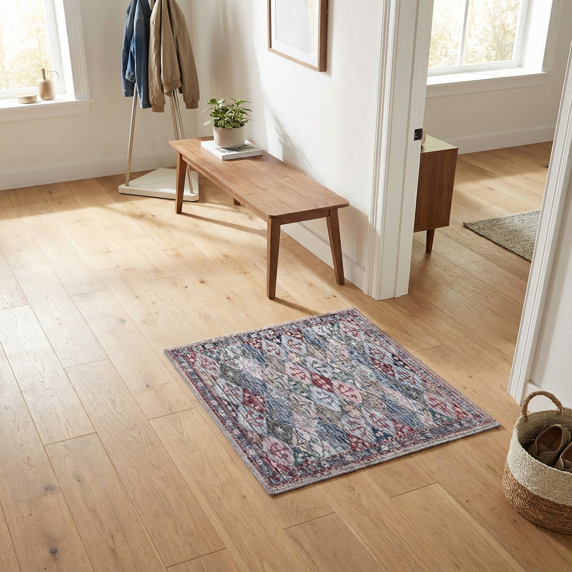 Crafted from chenille, the rug has a soft texture that is pleasant to the touch. The flatweave construction contributes to its durability and a sleek profile that is less prone to bunching or sliding. Thanks to its machine-washable nature, maintenance is straightforward, making it an excellent choice for high-traffic areas or homes with pets. Additionally, the rug is stain-resistant and shed-free, ensuring it maintains its appearance over time.