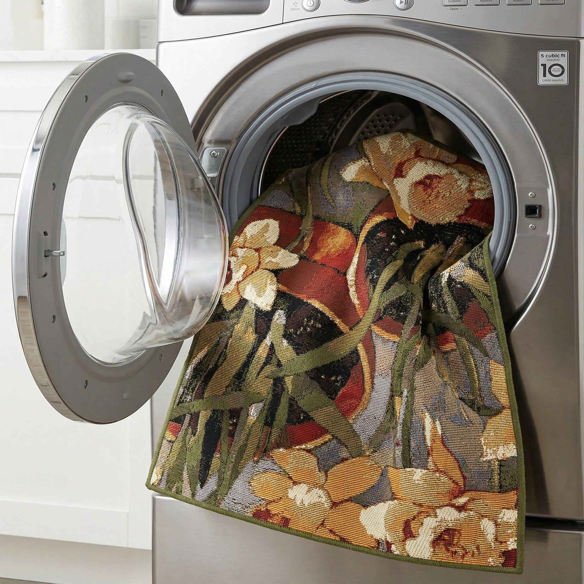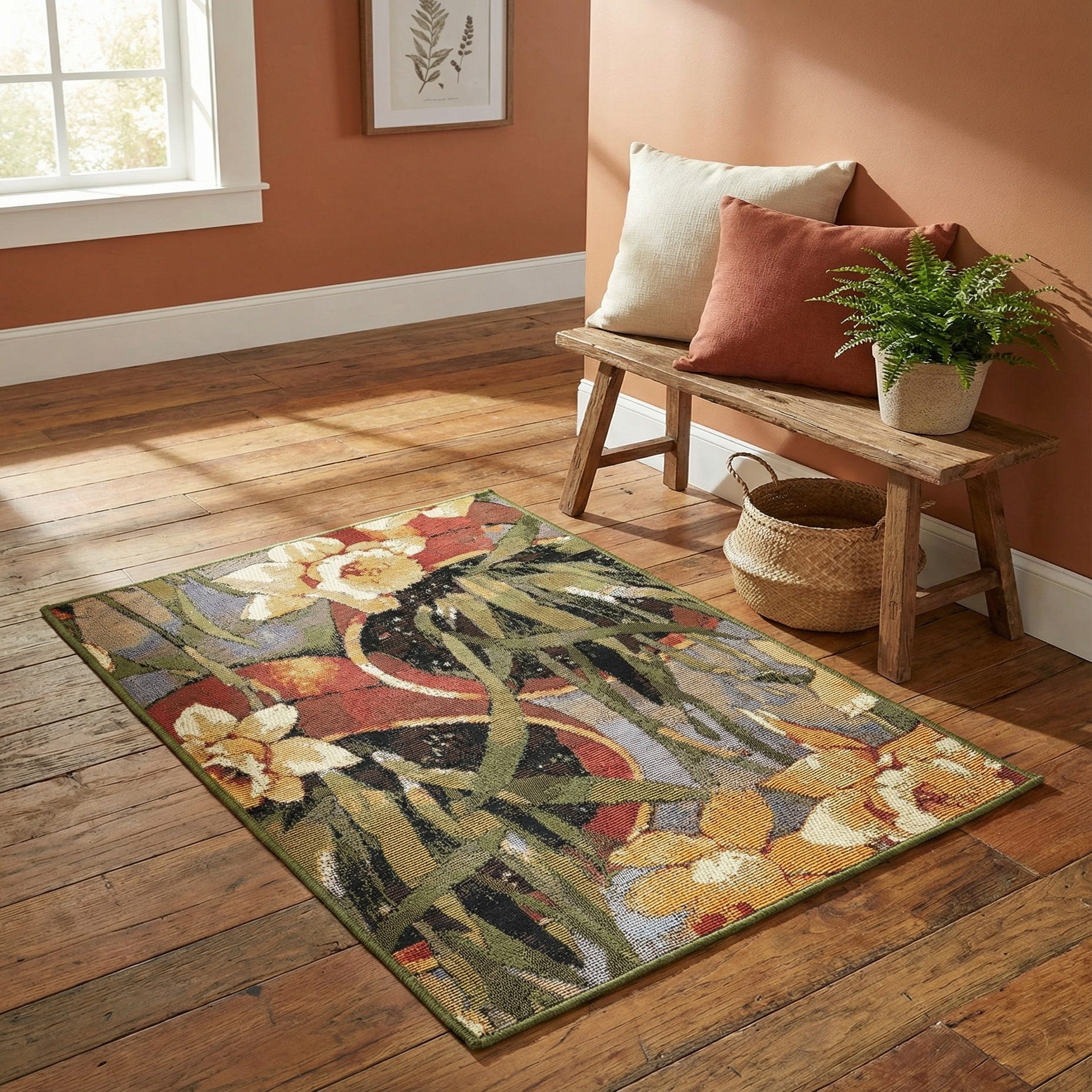 This piece works well in compact spaces where a bold pattern can make a statement: place it by an entry, in front of a kitchen sink, on a covered patio or layered beneath a small bistro set. Pair it with warm wood furniture, woven wicker or iron-frame pieces and neutral linens to let the colors pop, or coordinate with terracotta pots and olive-green textiles for a cohesive, garden-inspired look.