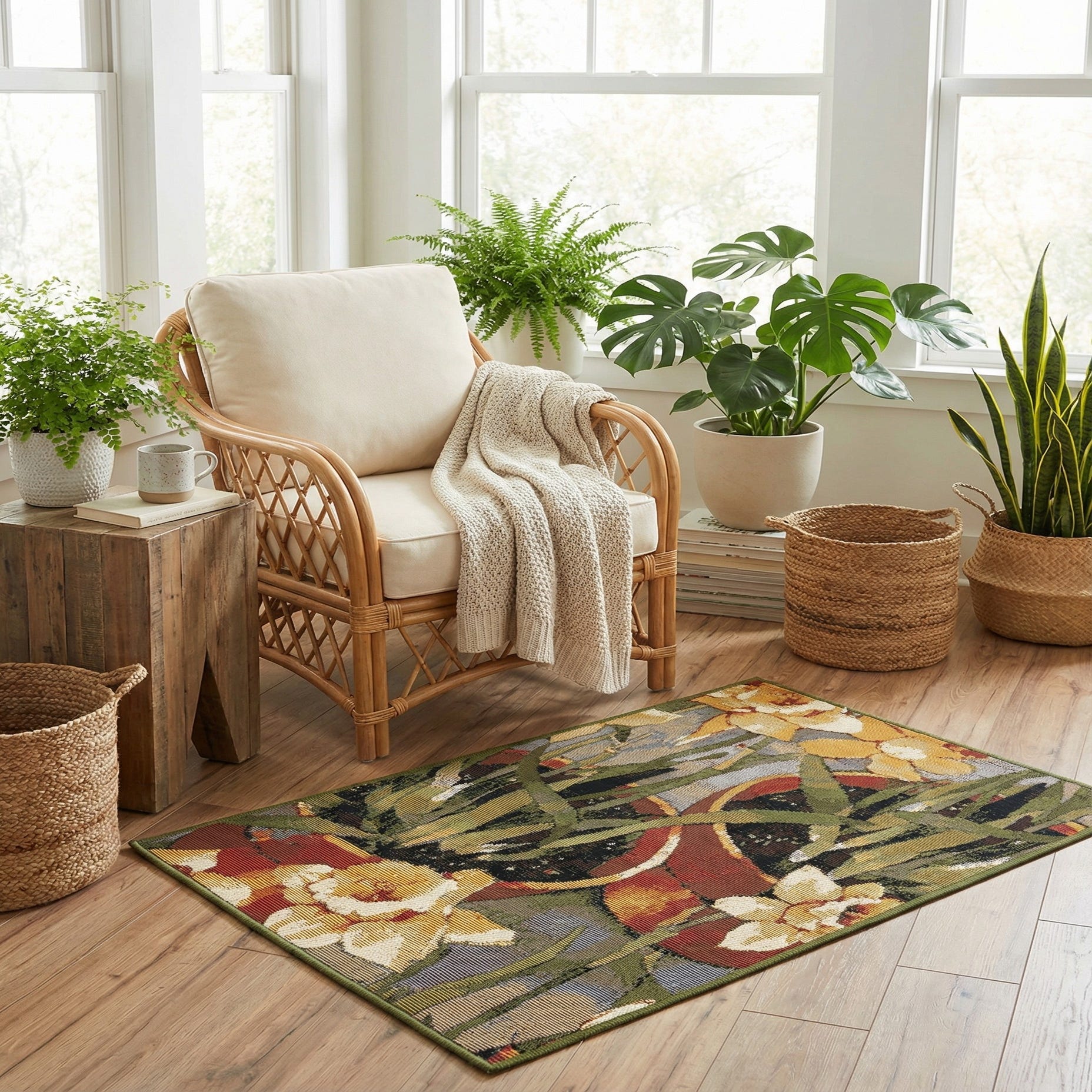 2' x 3' Washable Botanical Indoor / Outdoor Rug