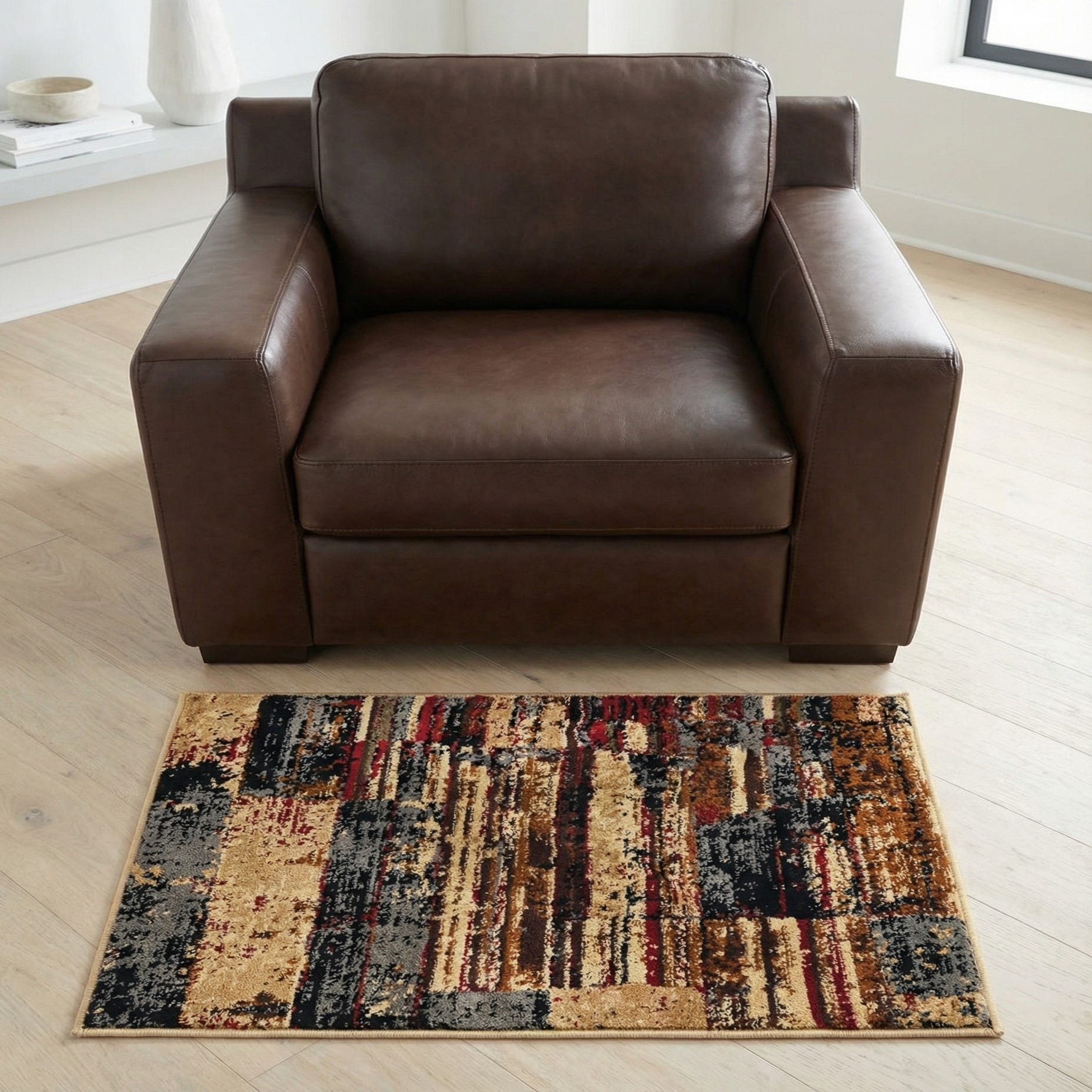 Machine-made from 100% polypropylene, the rug has a low-to-medium cut pile with a dense, slightly textured feel underfoot. It works well in compact living spaces where you want color and pattern without overwhelming the room—try it in an entry, in front of a desk, or layered under a small seating group. The warm golds and browns pair nicely with wood tones and leather, while the black, gray and red accents make it a good match for industrial, mid-century or contemporary furnishings.