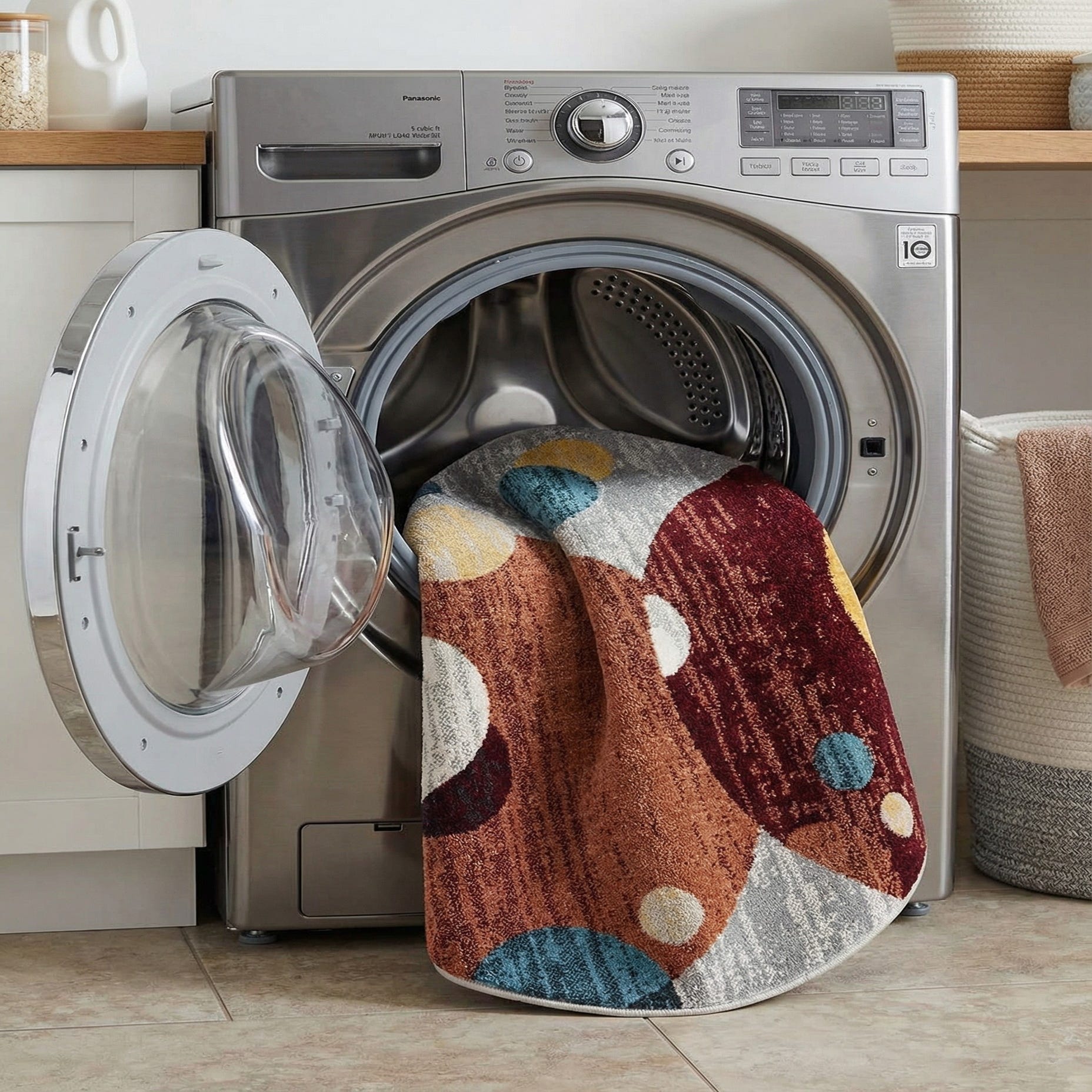 The rug's surface, while visually dynamic, is designed for functionality with its stain-resistant, pet-friendly, and machine-washable qualities, ensuring it is both an attractive and practical choice for a variety of living spaces. Thanks to its shed-free texture, it provides a low-maintenance option for high-traffic areas.