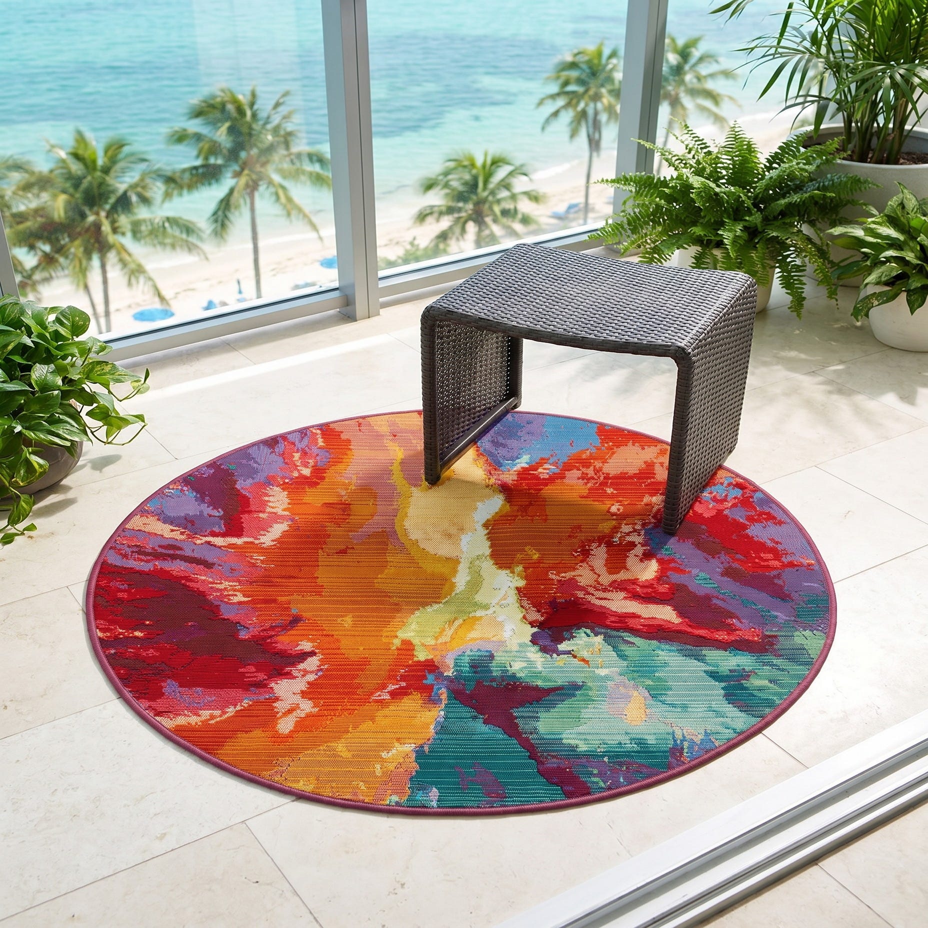 3' x 3' Easy-Clean Modern Indoor / Outdoor Round Rug
