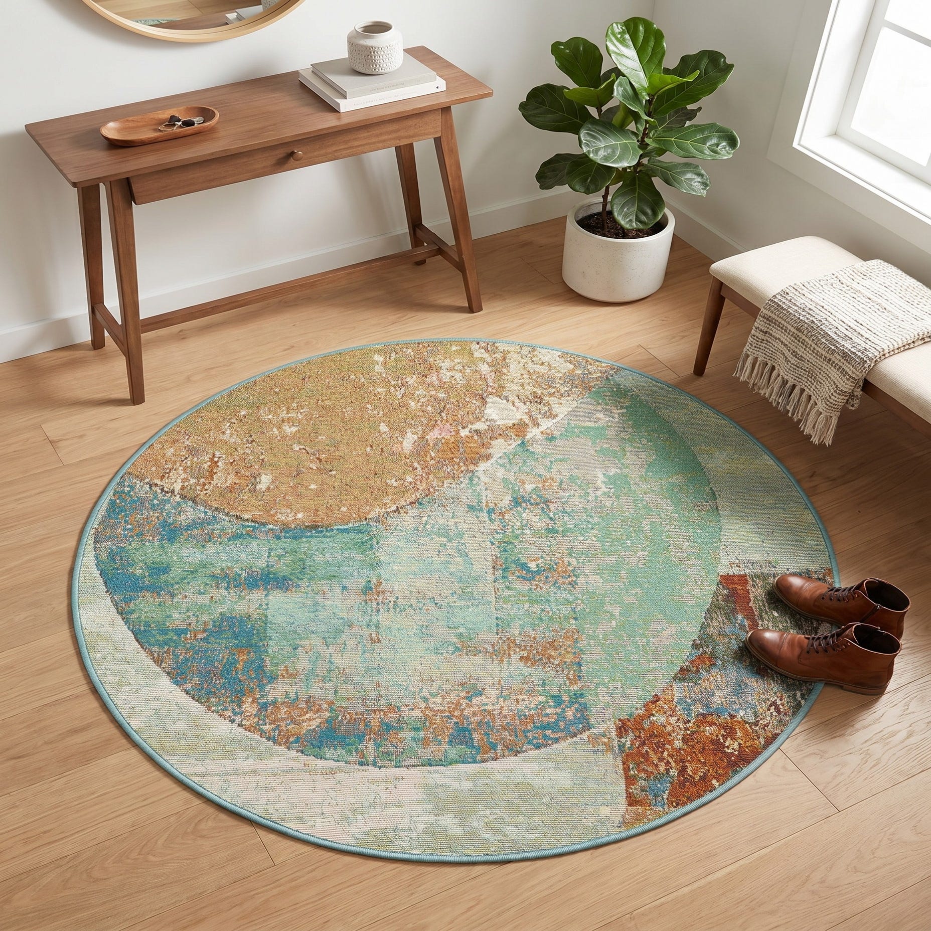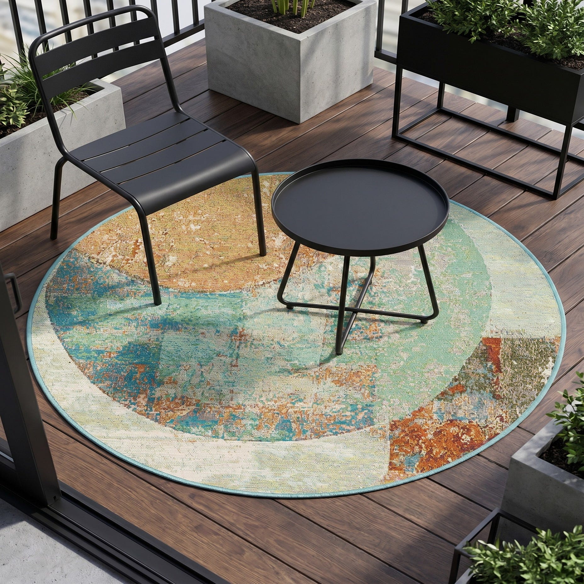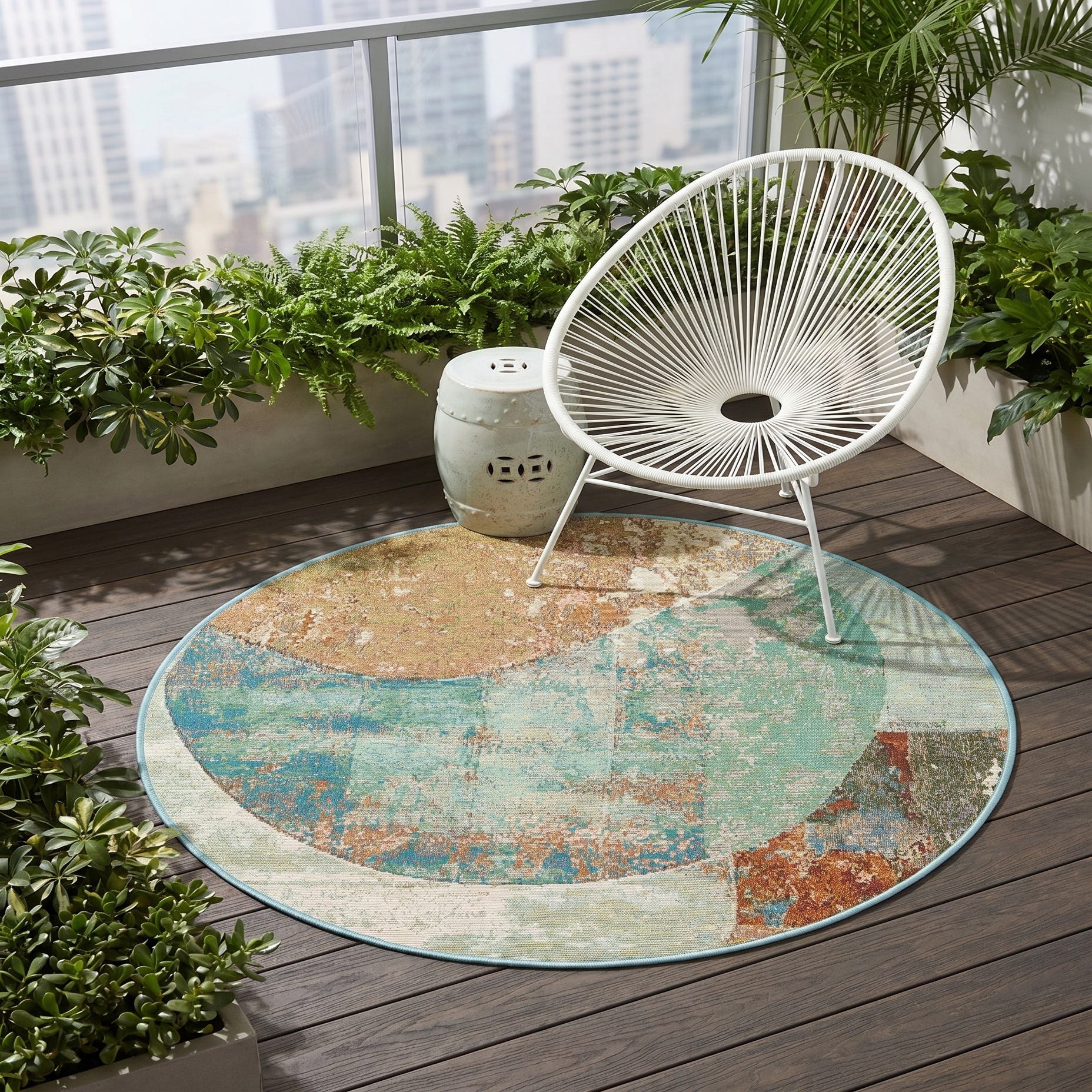 3' 3 x 3' 3 Easy-Clean Modern Indoor / Outdoor Round Rug