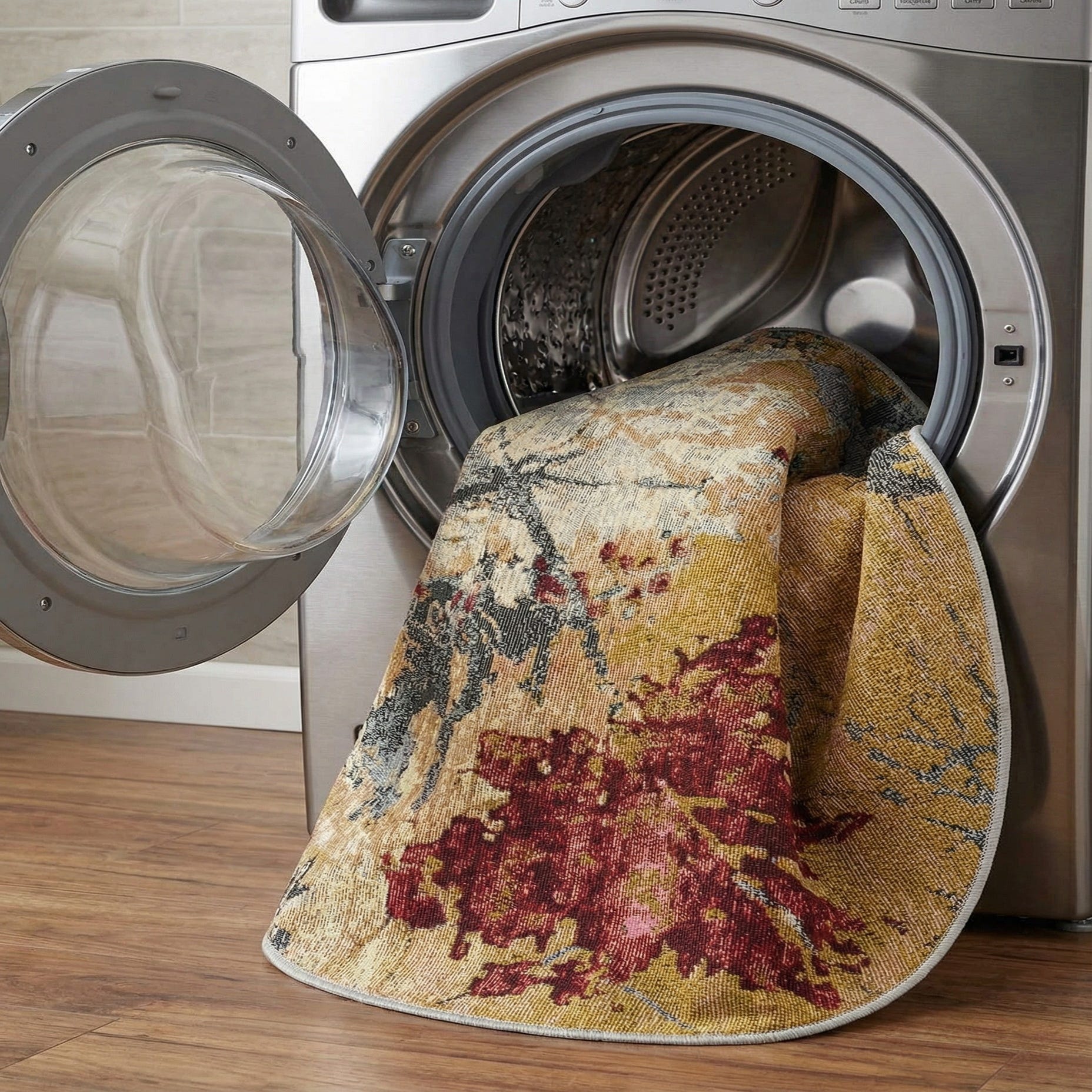 3' 3 x 3' 3 Washable Modern Indoor / Outdoor Round Rug