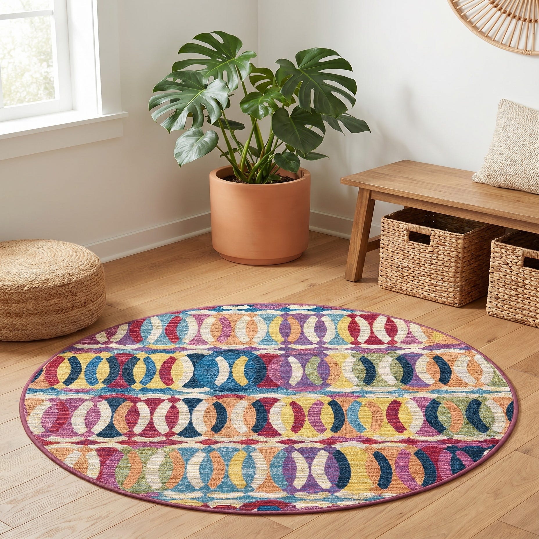 3' 3 x 3' 3 Easy-Clean Modern Indoor / Outdoor Round Rug