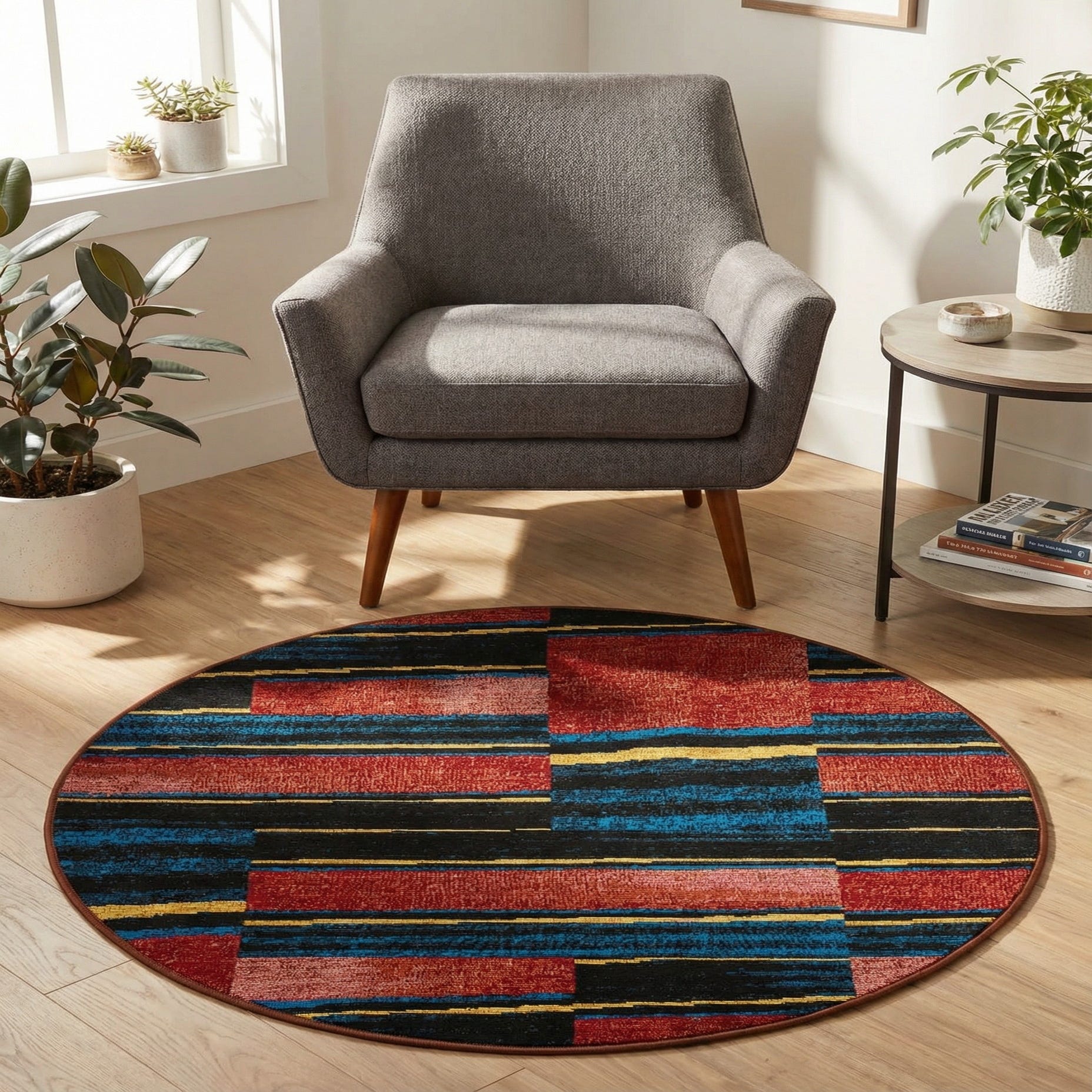 3' x 3' Washable Modern Indoor / Outdoor Round Rug