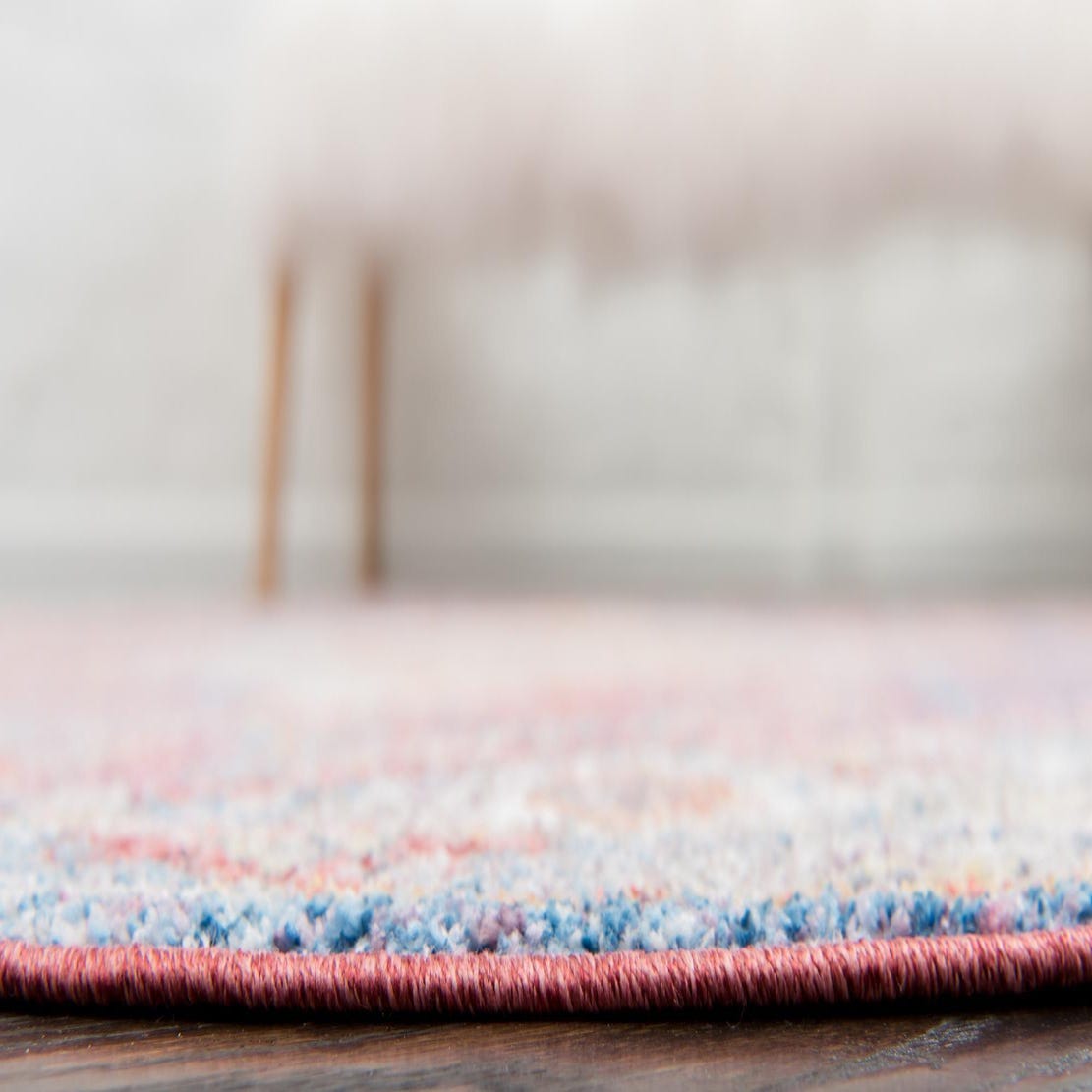 Ideal for a cozy reading nook, a child’s room or nursery, or layered beneath a small round café table, this rug brings a casual, colorful touch to a variety of interiors. Pair it with light wood or rattan furniture and soft linen upholstery for a relaxed, bohemian look, or use it to add playful contrast to a neutral living room or a navy-accented bedroom. Its round shape and lively palette make it a simple way to introduce pattern and warmth to compact spaces.