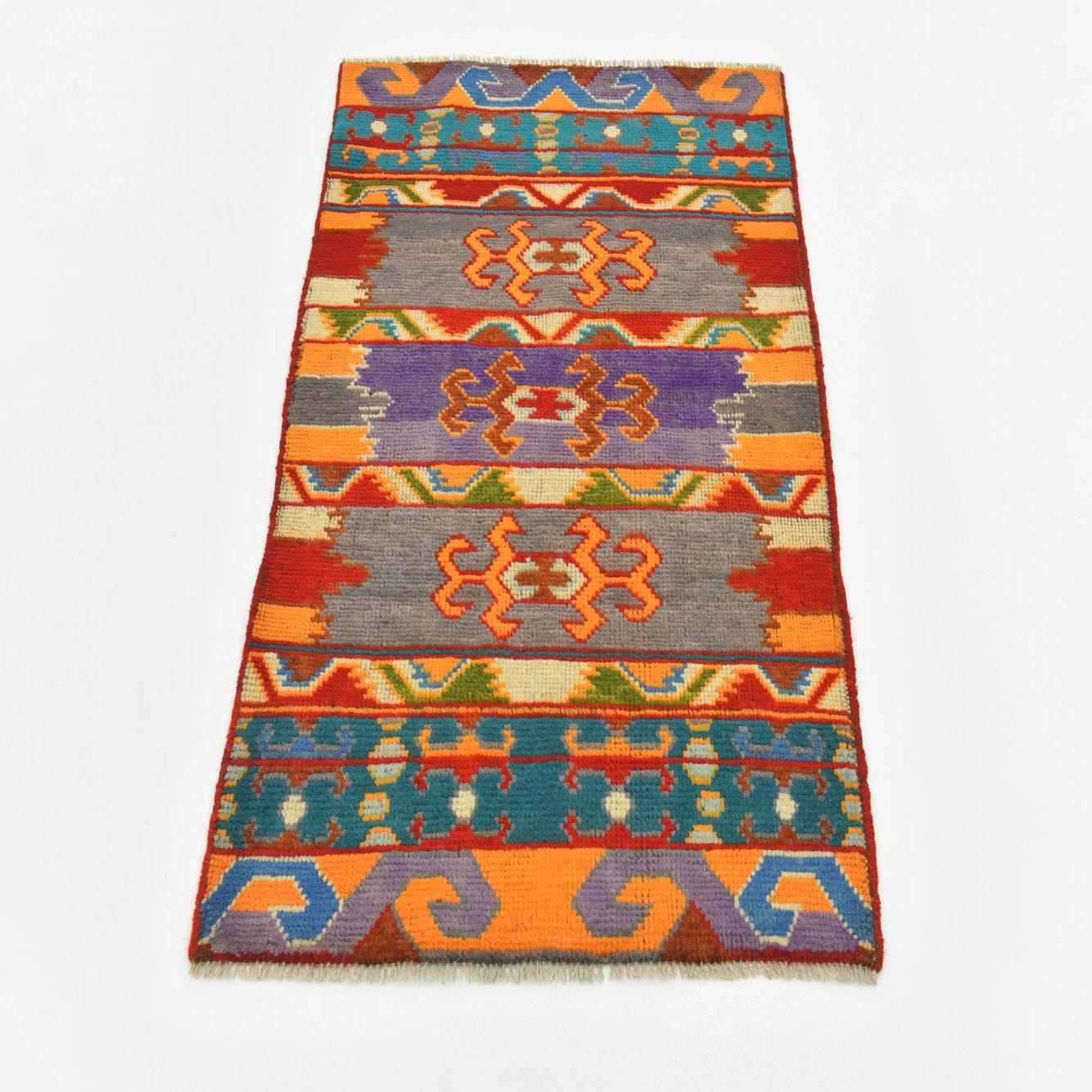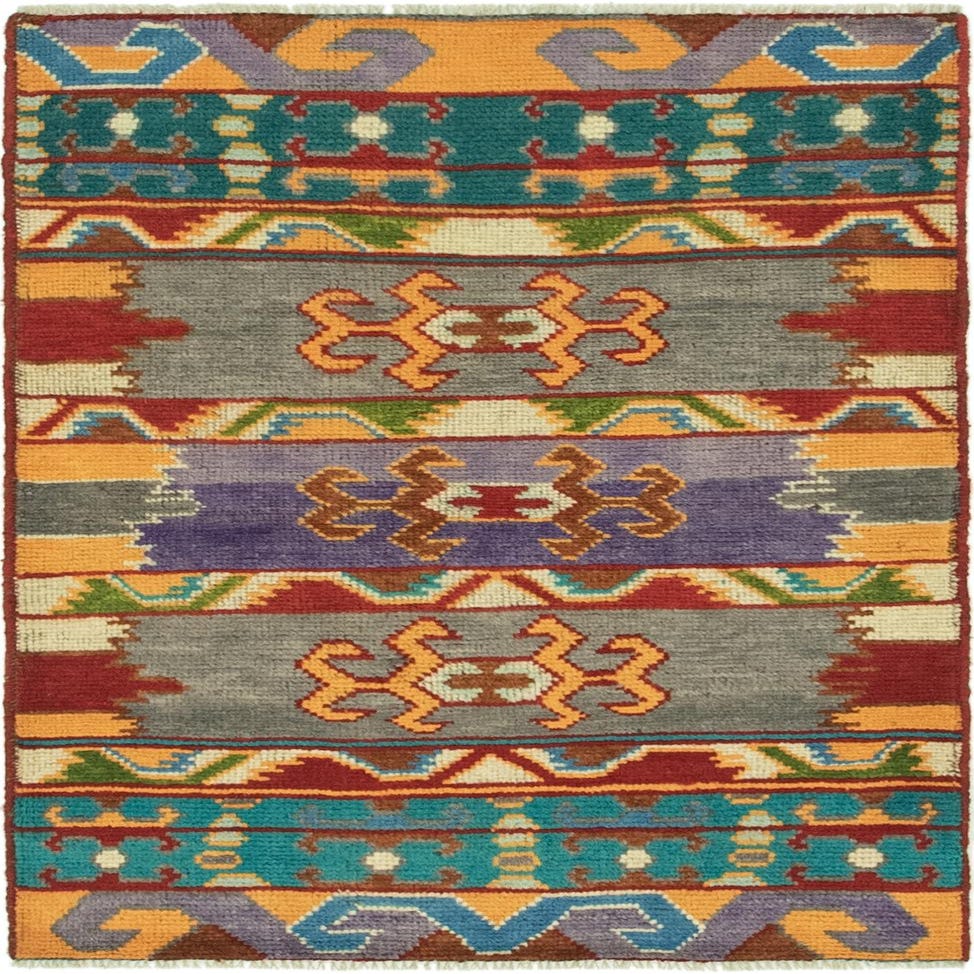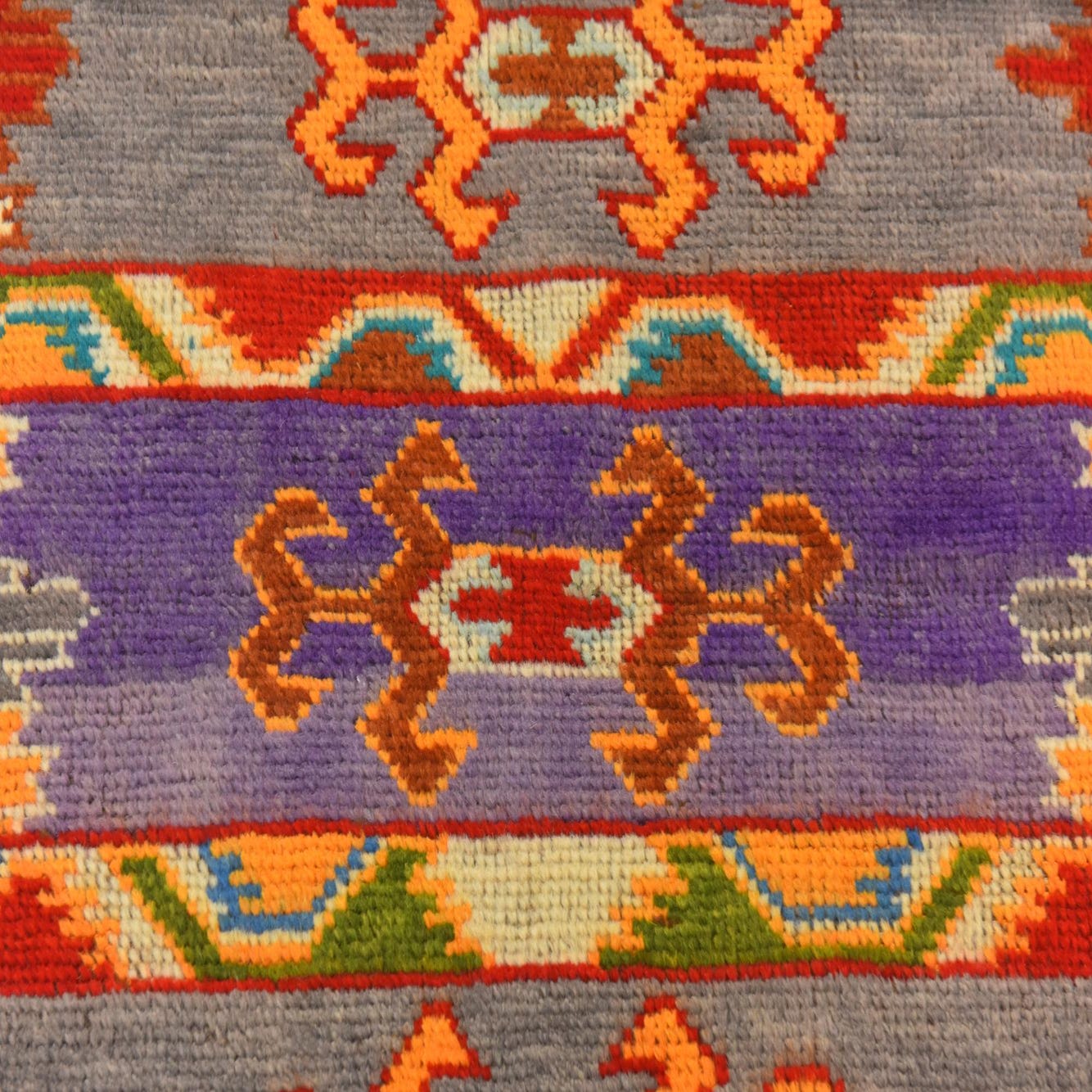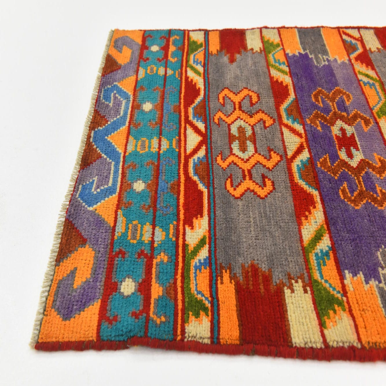 Primary color is Multi. Colors in this rug include: Multi, Blue, Gray, Ivory, Orange, Purple, Red, Teal, Yellow.