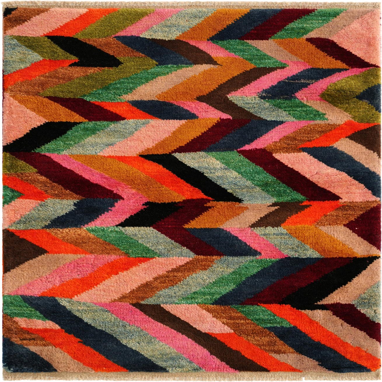 Primary color is Multi. Colors in this rug include: Multi, Beige, Brown, Navy Blue, Olive, Orange, Red, Pink, Green.