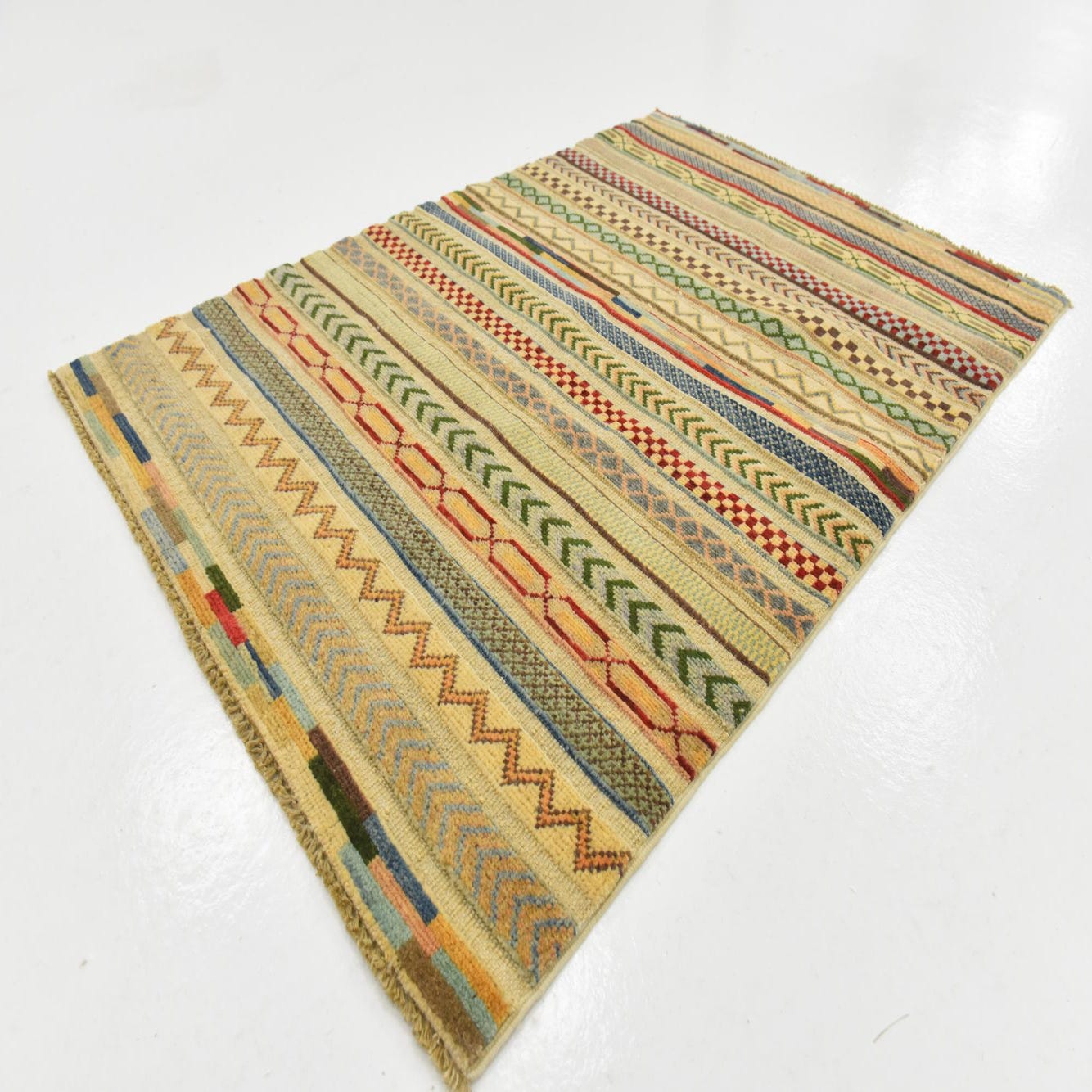 A 3x4 rectangular multi-colored Southwestern rug with varied stripes and tribal patterns in warm tones.