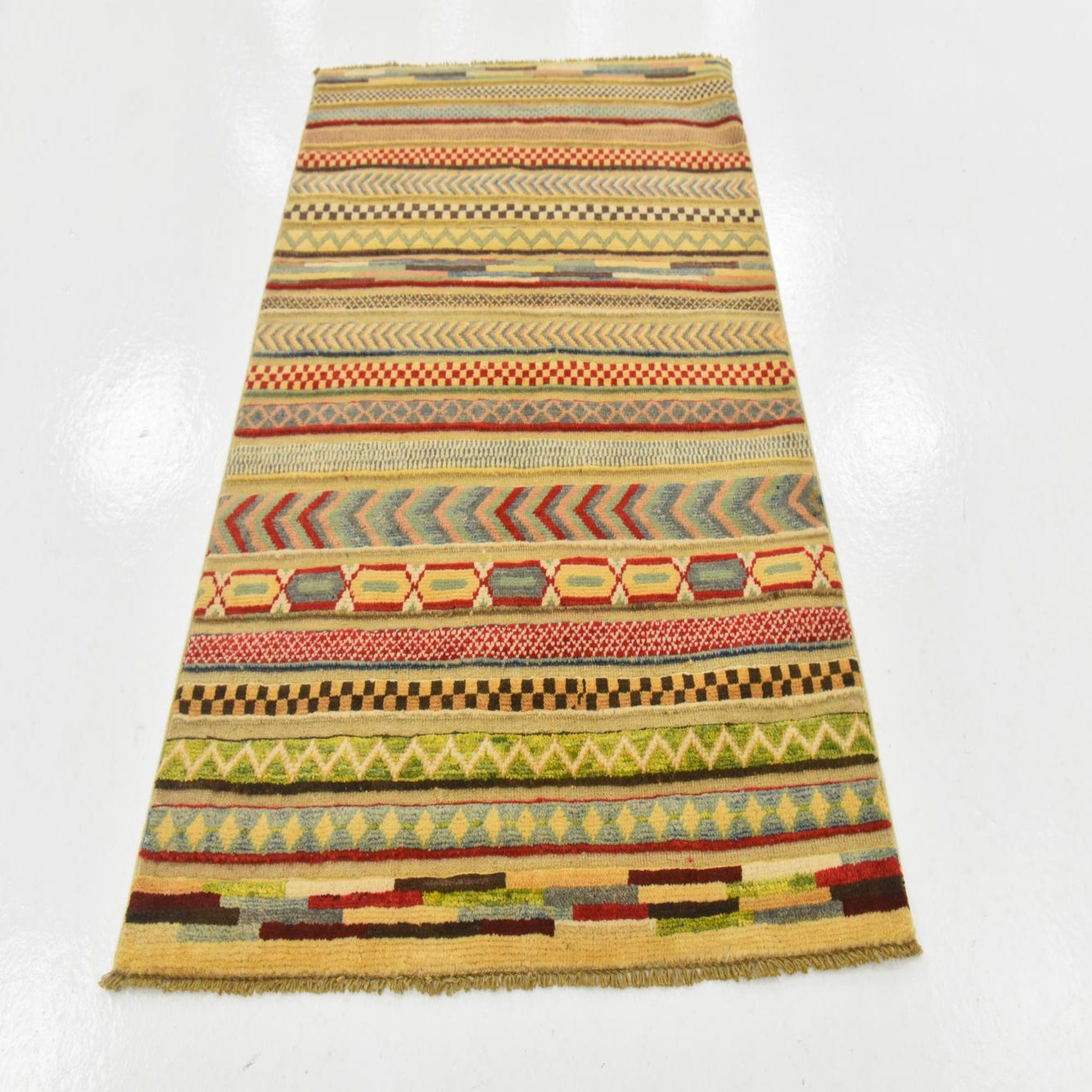 A 3x4 rectangular multi-colored wool rug featuring Southwestern and tribal stripes with various geometric patterns.