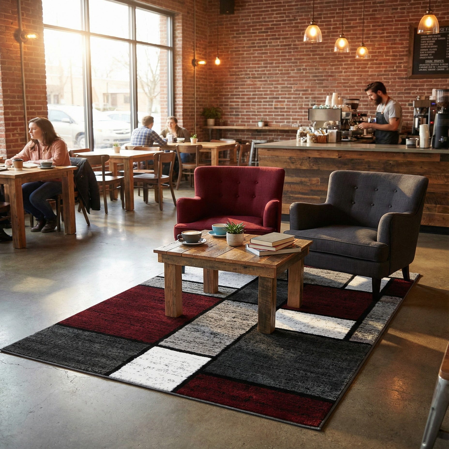 Primary color is Multi. Colors in this rug include: Multi, Black, Gray, Ivory, Red.