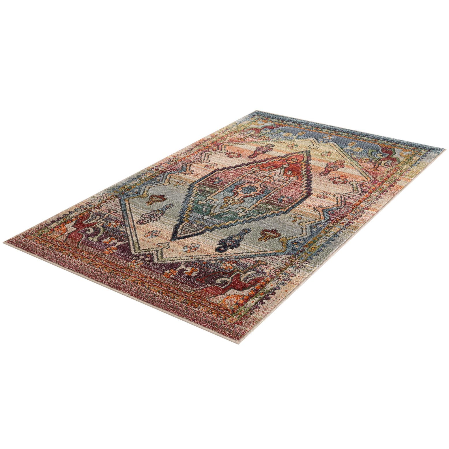 A 3x5 rectangular multi-colored rug with a distressed traditional medallion pattern, ideal for an indoor patio.