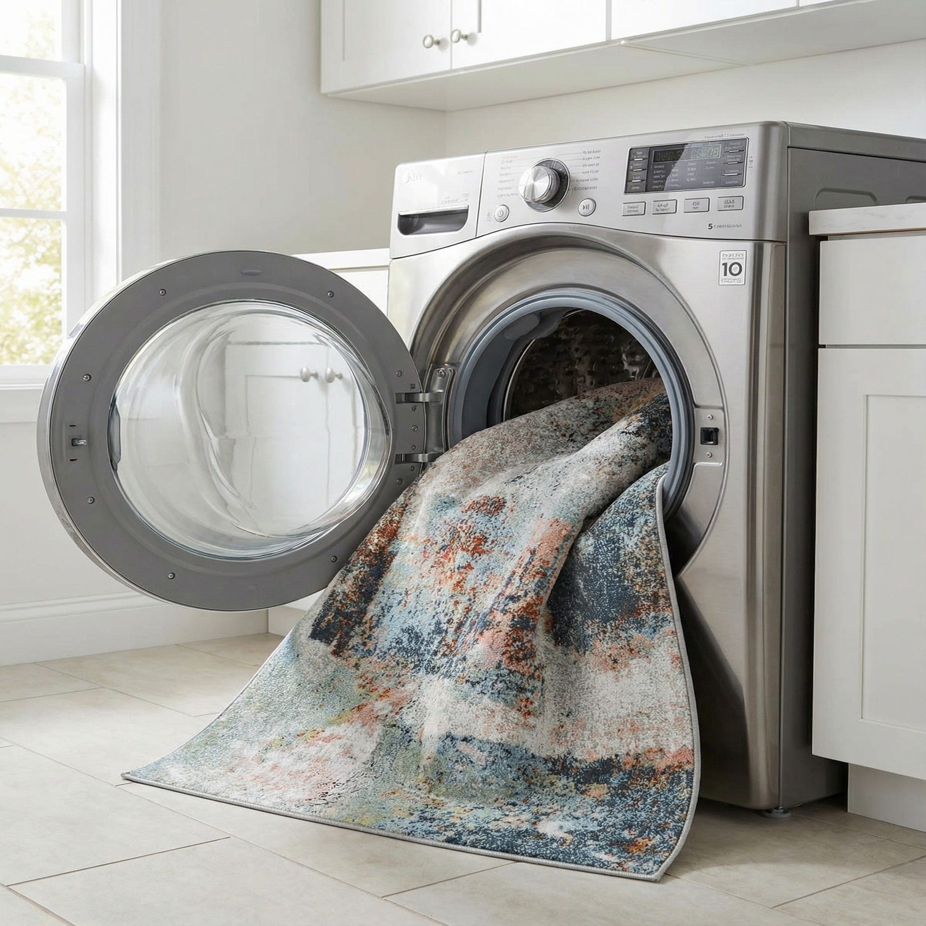 The rug's polyester composition ensures durability, making it a smart choice for high-traffic areas. Additionally, it is stain-resistant and pet-friendly, allowing ease of maintenance in a busy household. Machine washable, this rug is convenient to clean, ensuring it remains a stylish and practical addition to your home. The shed-free characteristic upholds its tidy appearance over time.