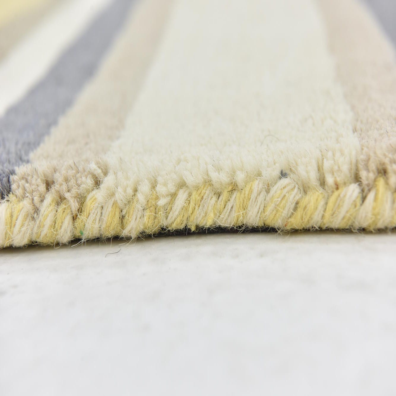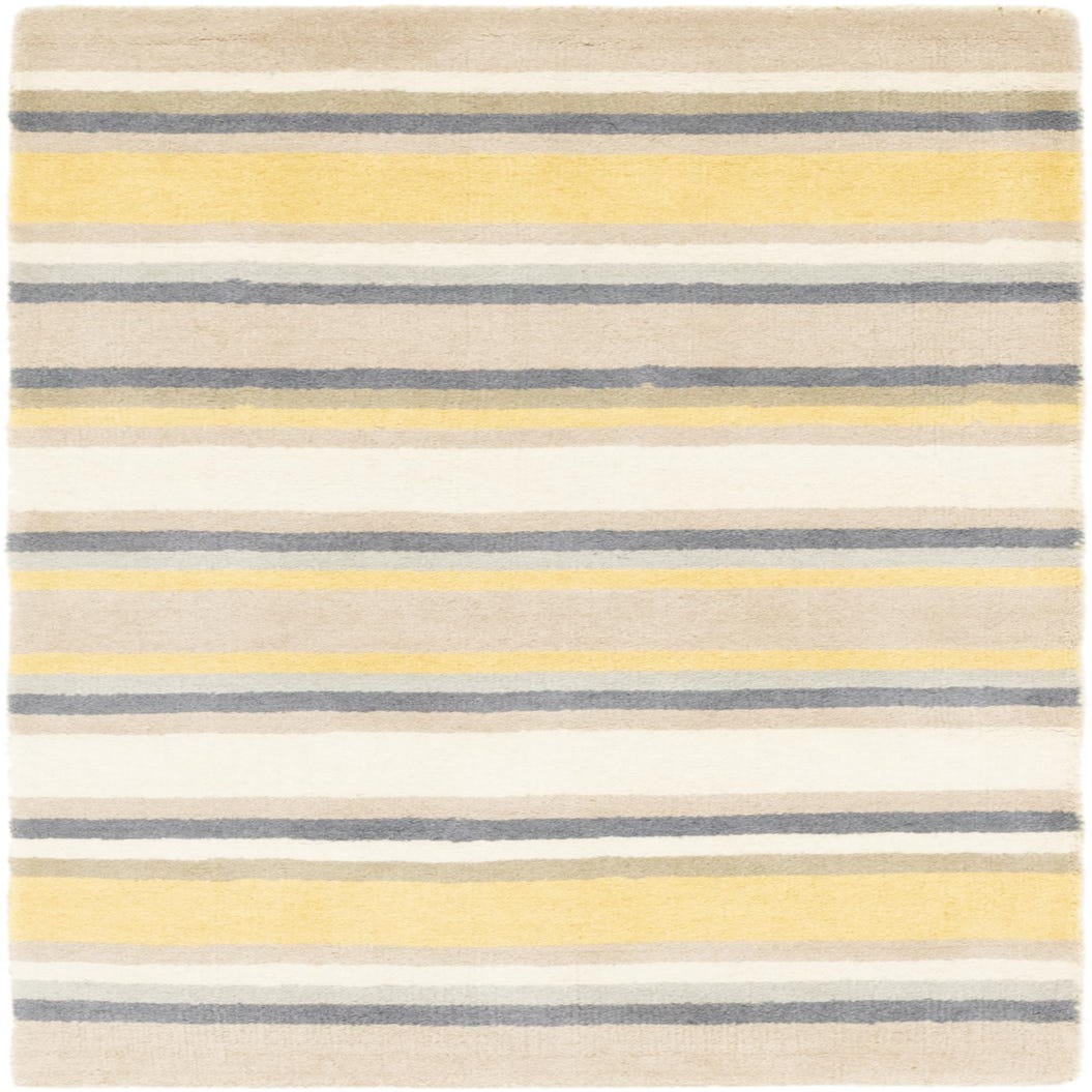 A 3x5 rectangular Luna rug with horizontal stripes in varying shades of yellow, beige, cream, and gray.