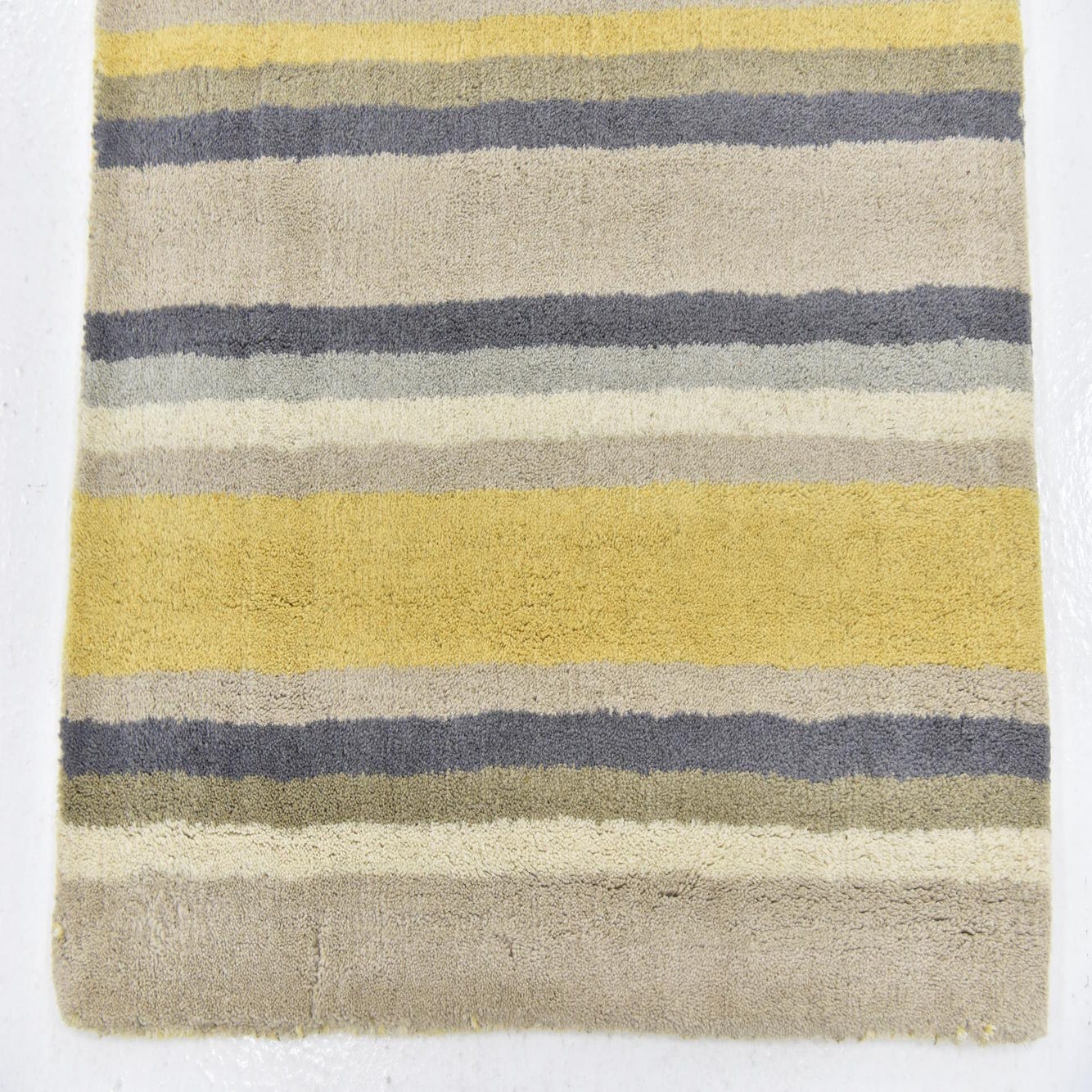 A soft, rectangular 3x5 Luna rug featuring horizontal stripes in varying widths of yellow, grey, and cream colors.