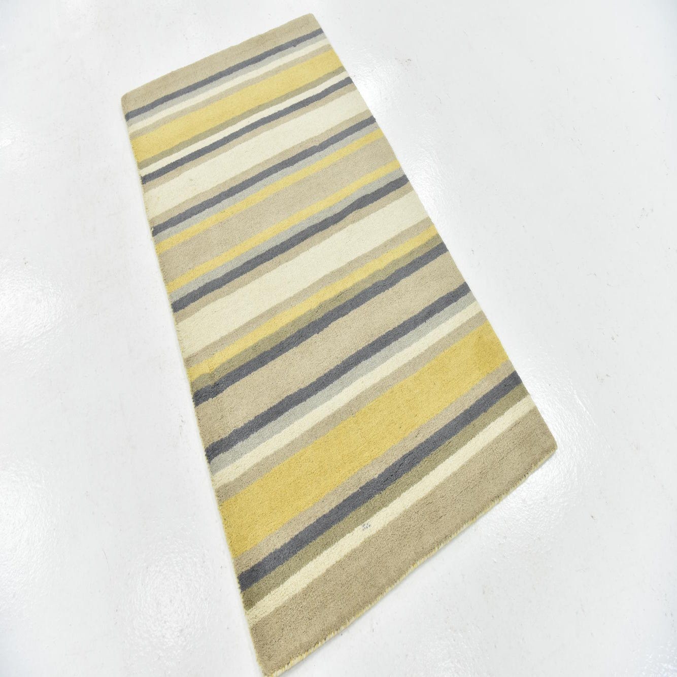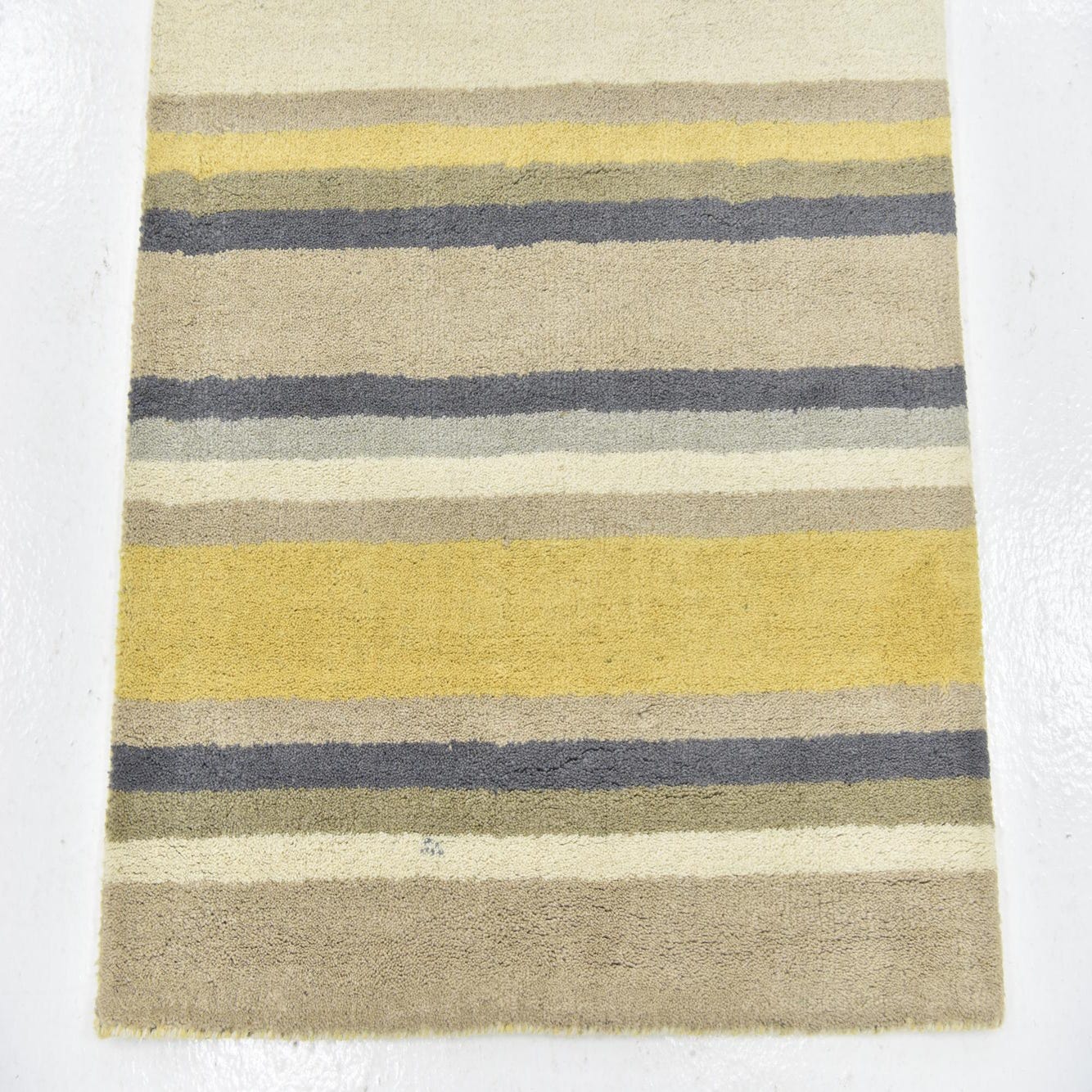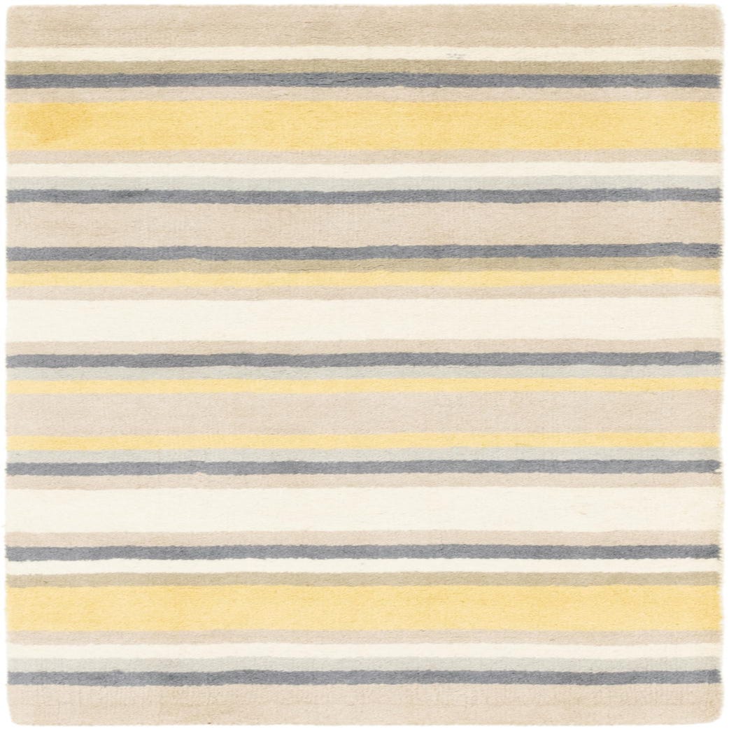 A 3x5 rectangular Luna rug with horizontal stripes in varying widths of yellow, grey, beige, and off-white.