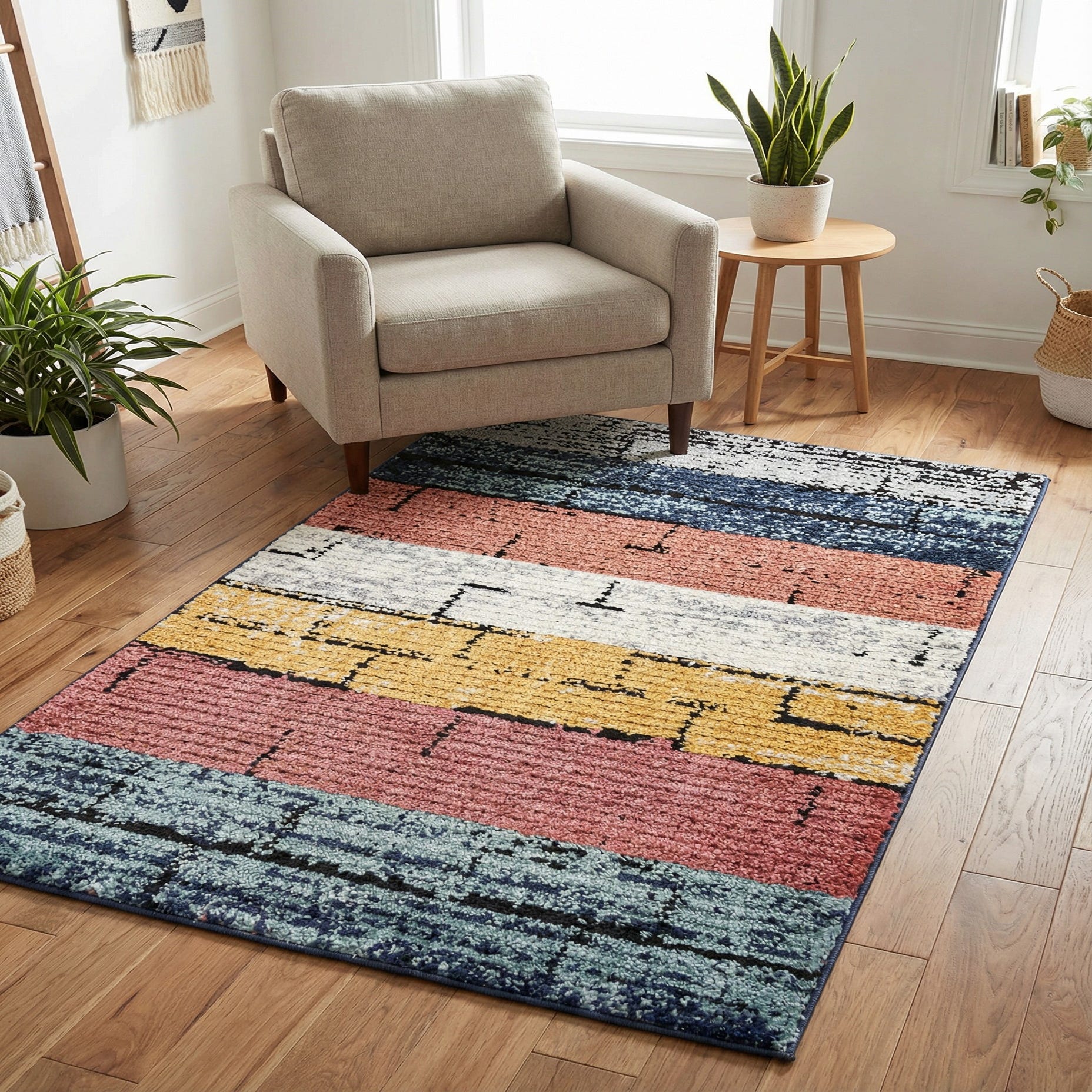 The texture of the rug is smooth and soft to the touch, with a shed-free property that makes it suitable for high-traffic areas. Additionally, the rug's stain-resistant nature ensures that it remains a practical choice for everyday living.