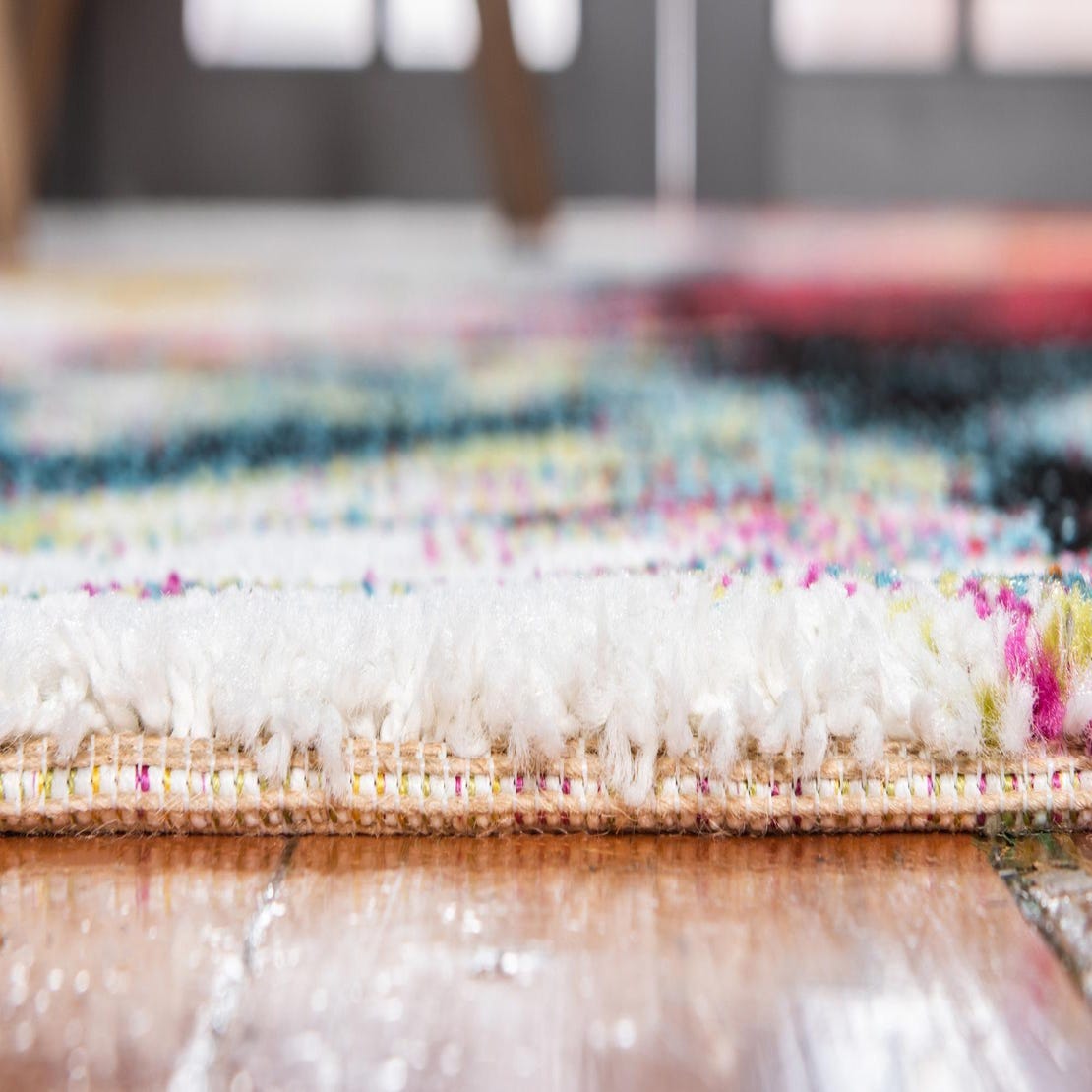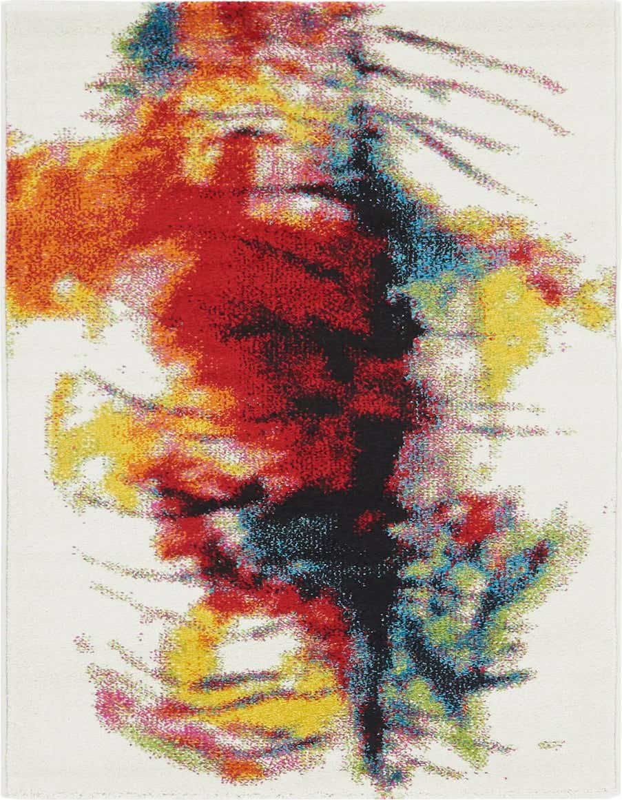 Primary color is Multi. Colors in this rug include: Multi, Black, Blue, Gray, Green, Orange, Red, Yellow, Violet, Peach.