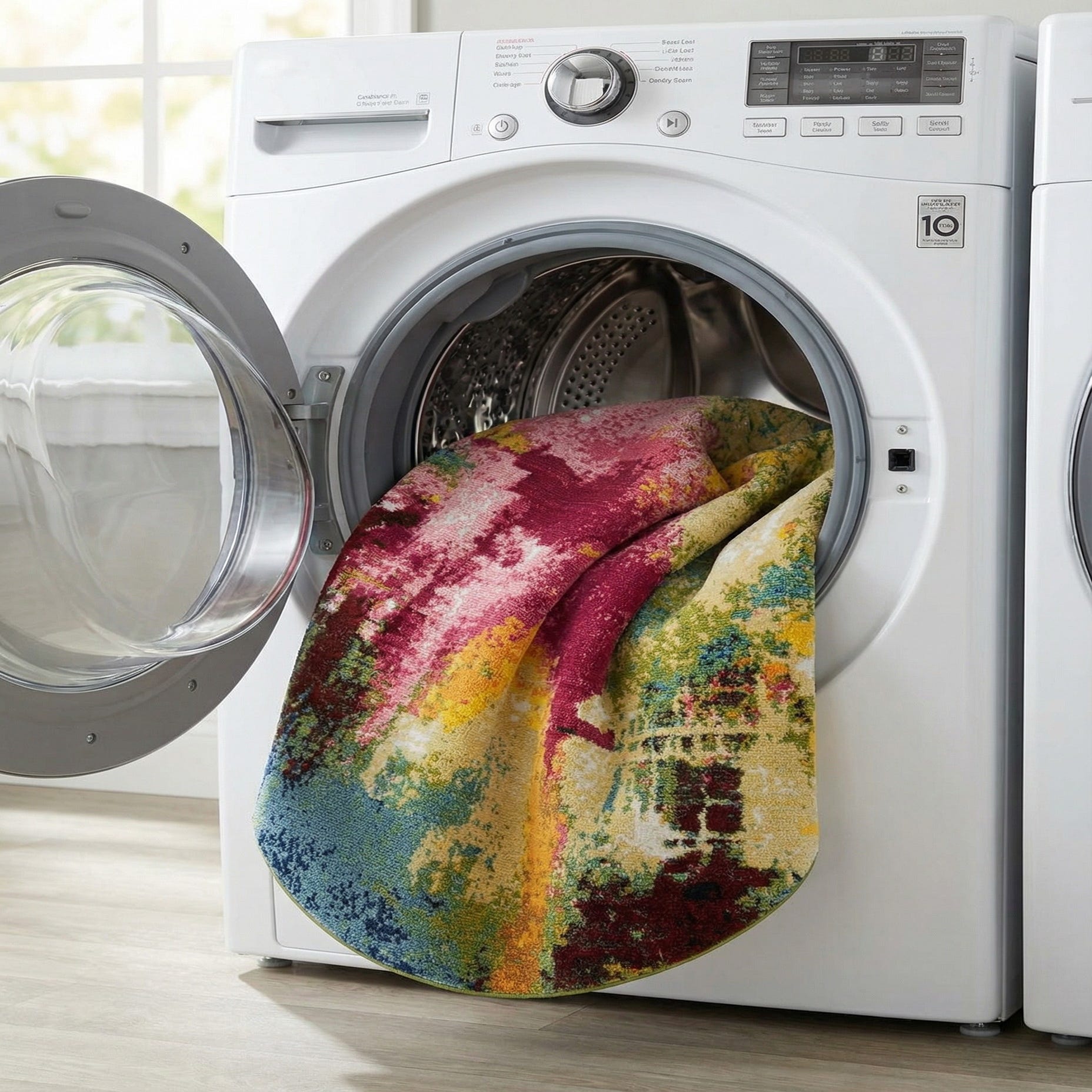 The round silhouette makes this piece a natural anchor for a small dining or bistro table, a cozy reading nook, or an entryway that needs a bold focal point. It pairs nicely with neutral upholstery to let the colors sing, or with mid-century and eclectic furnishings for a more adventurous look—think warm wood tones, brass accents, and textured throw pillows. The color range also complements contemporary schemes that welcome a painterly, artistic touch.