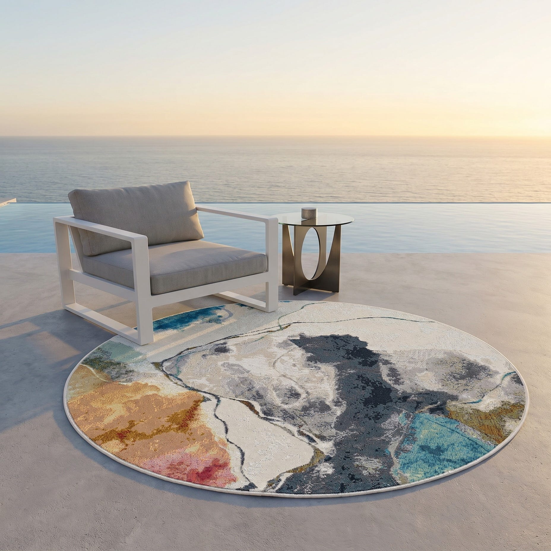 4' 1 x 4' 1 Easy-Clean Modern Indoor / Outdoor Round Rug