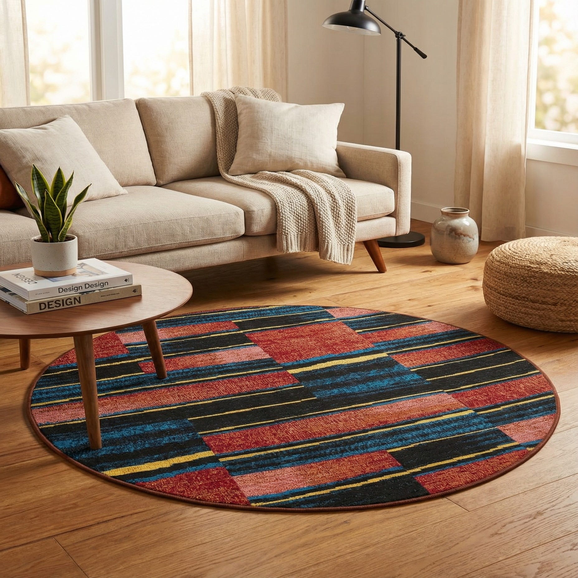 4' x 4' Washable Modern Indoor / Outdoor Round Rug