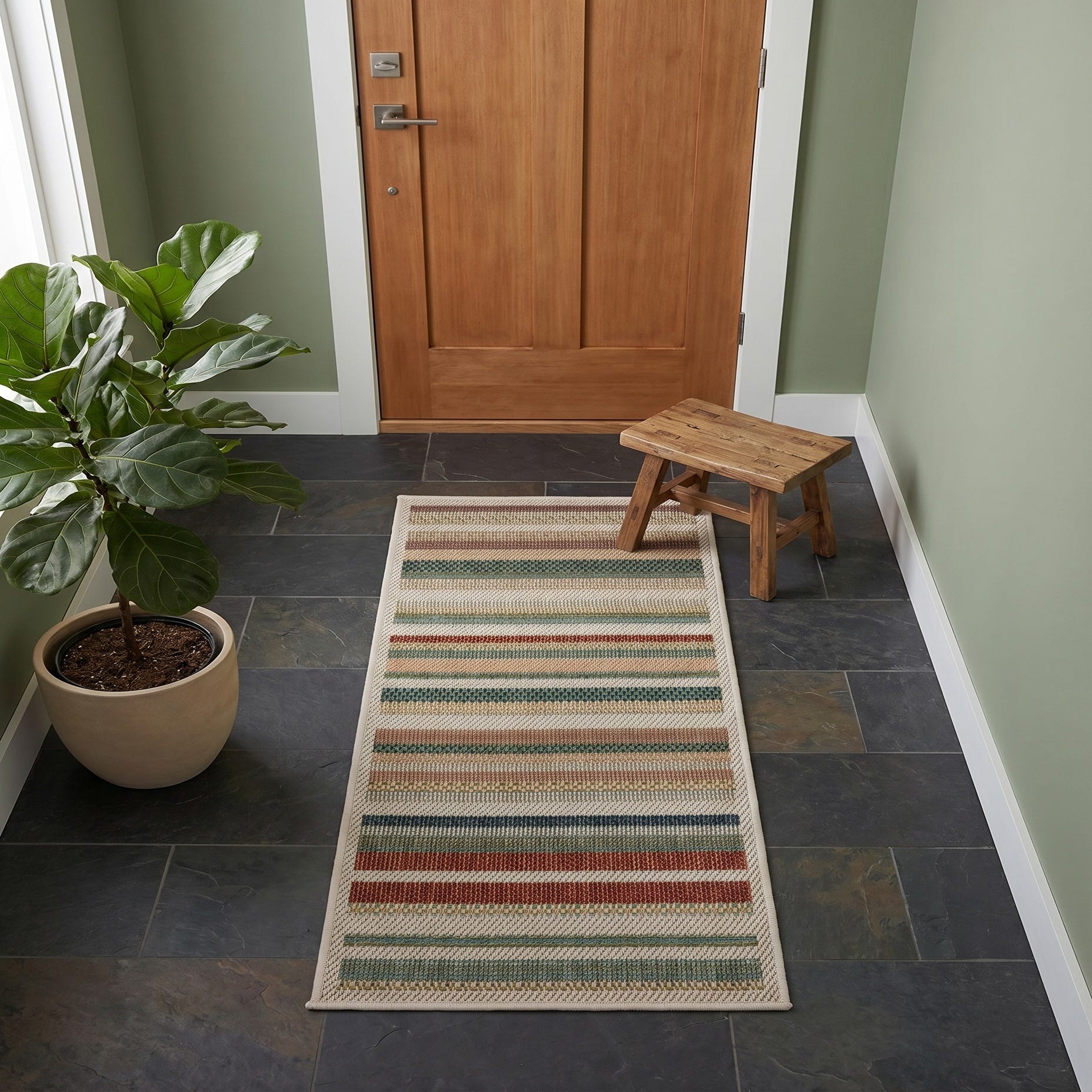 Got this rug for my covered porch. My hack is to steam all my rugs instead of waiting for them to fatten. It looks better than I expected I would use it inside as well.