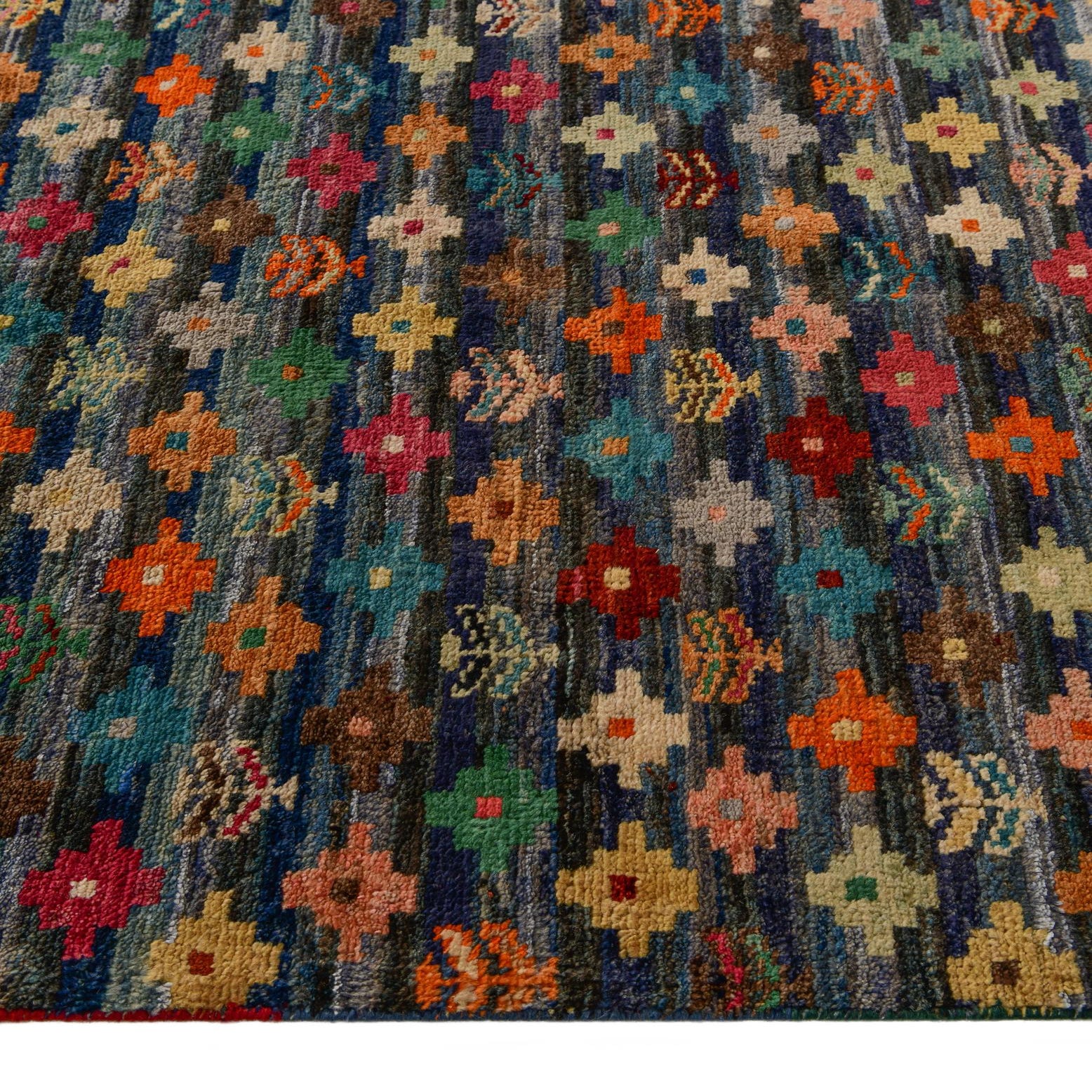Primary color is Multi. Colors in this rug include: Multi, Beige, Black, Blue, Brown, Navy Blue, Olive, Orange, Red, Pink.