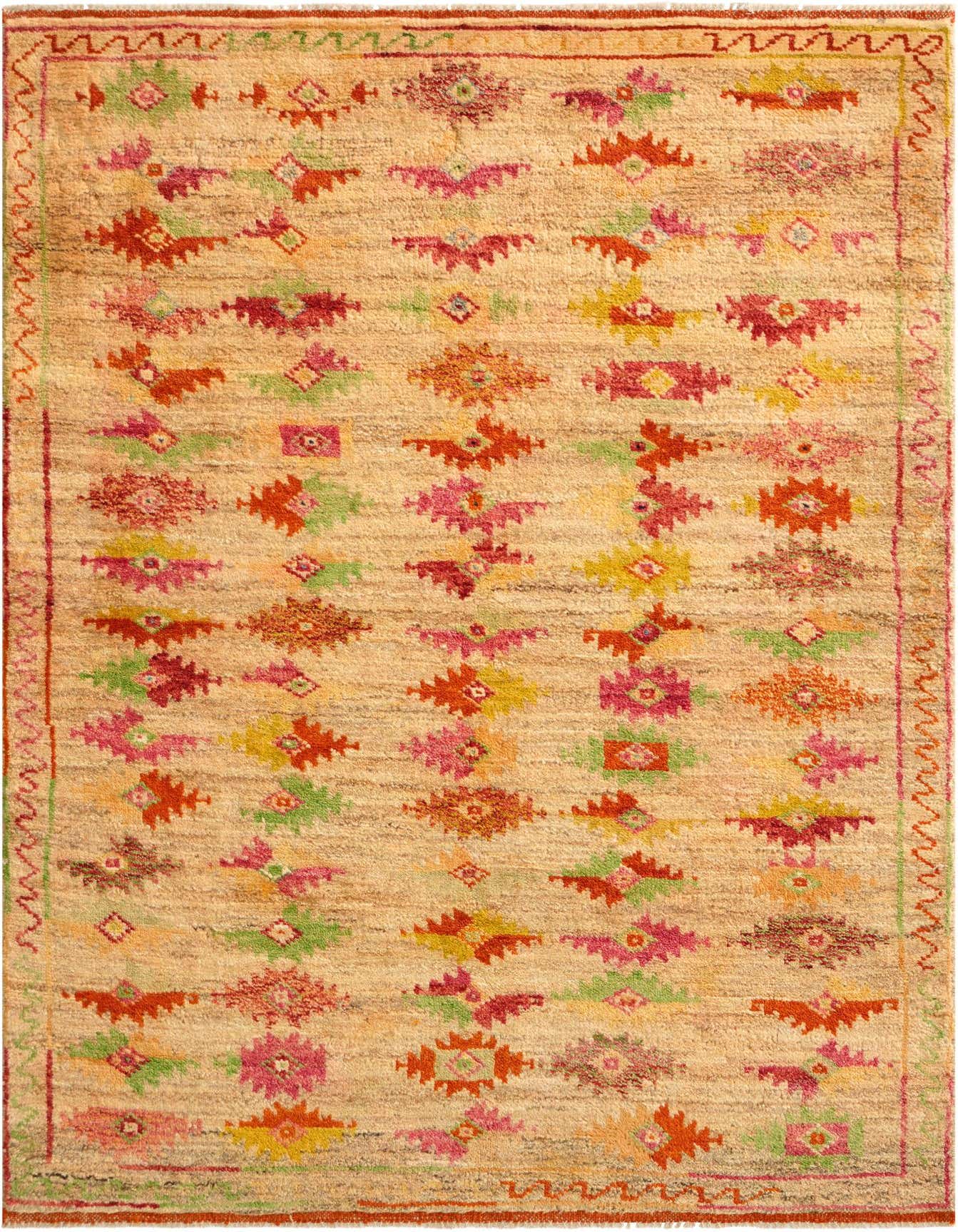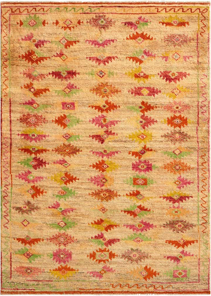 Primary color is Multi. Colors in this rug include: Multi, Beige, Brown, Gold, Green, Orange, Red, Pink.
