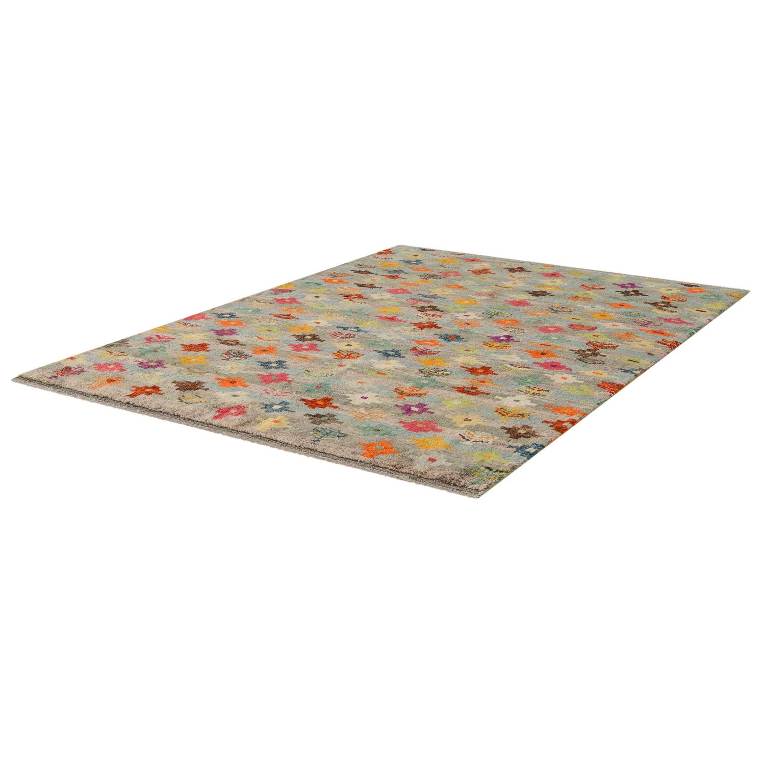 Primary color is Multi. Colors in this rug include: Multi, Beige, Blue, Brown, Gray, Green, Ivory, Orange, Red, Yellow, Purple.