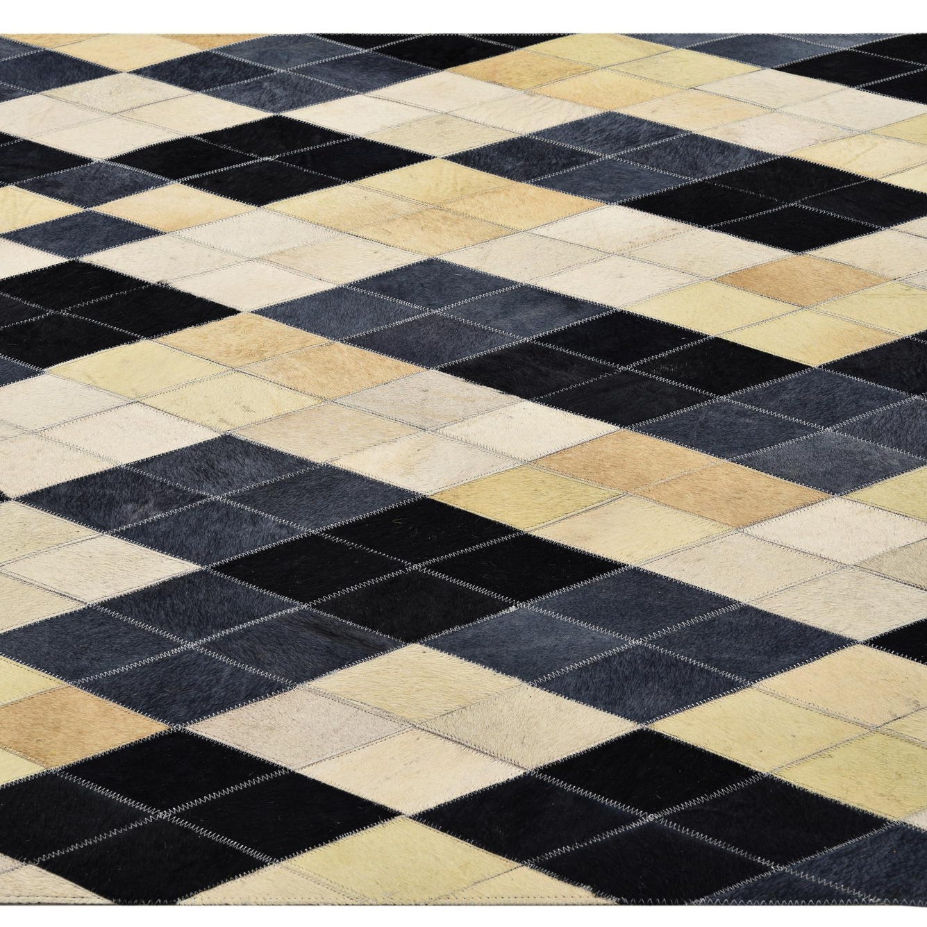 From the Cowhide Collection, this handcrafted 4x6 rug presents a dynamic harlequin pattern, infusing classic design with a contemporary edge. Artfully constructed with cowhide and leather, the rug showcases a harmonious blend of black, ivory, yellow, and gray tones set against a multi-colored background, offering a versatile palette that complements a variety of living spaces.