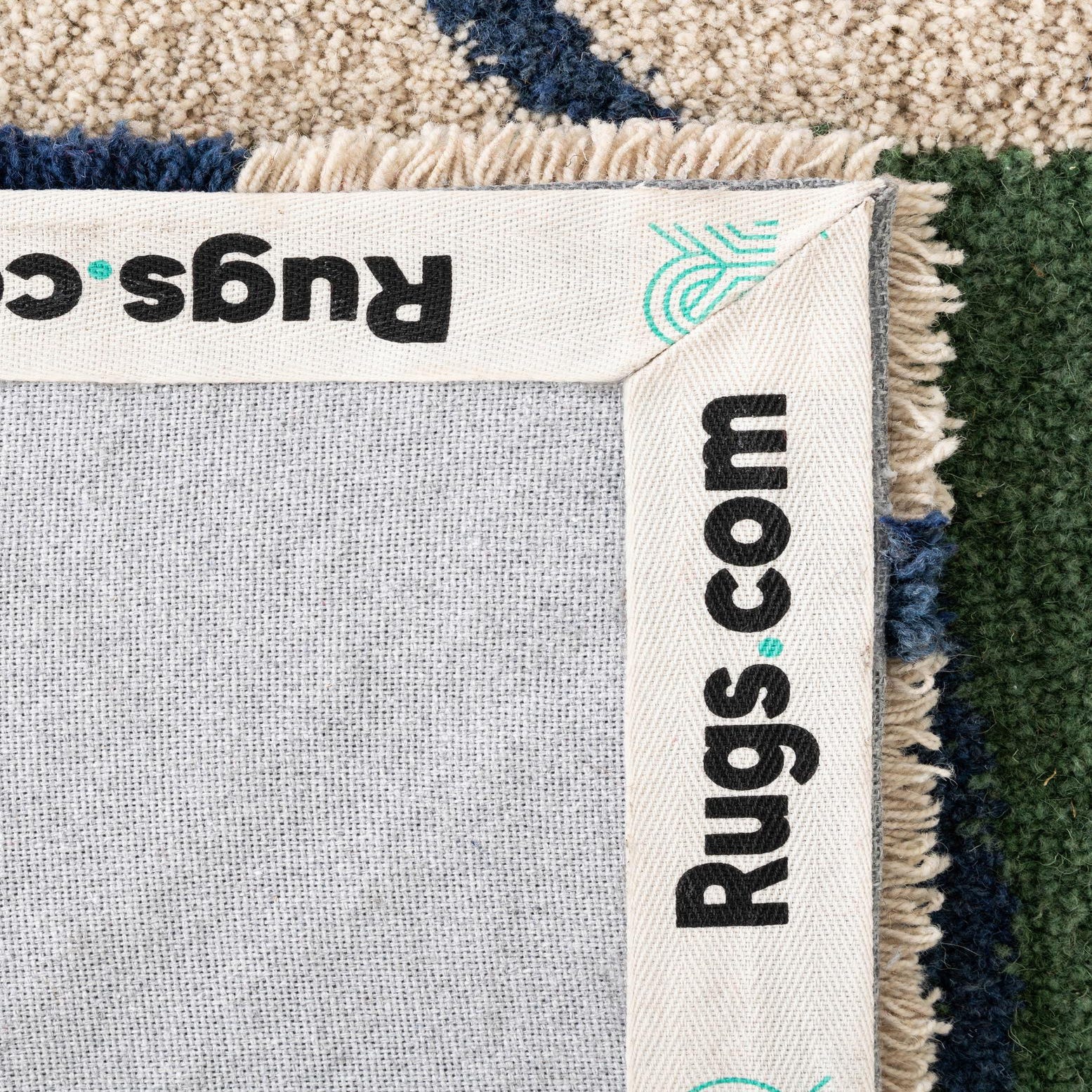 This piece suits a variety of interiors: place it beneath a compact seating group or at the foot of a bed to introduce pattern without overwhelming the room. It pairs well with warm wood furniture and neutral upholstery, and the navy and green accents coordinate with brass or matte-black hardware for a modern, collected feel. The rug also complements eclectic or coastal-inspired schemes where layered textures and organic forms are welcome.