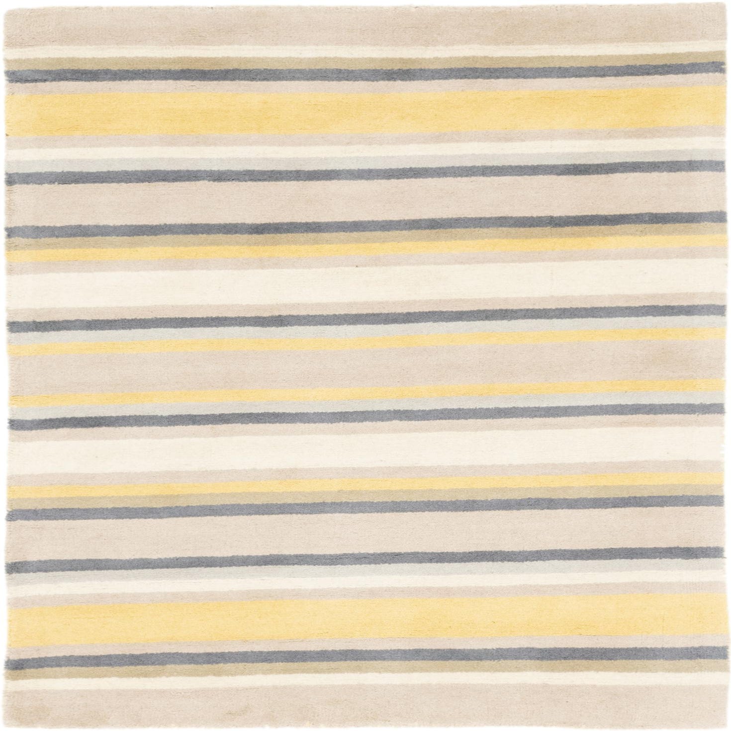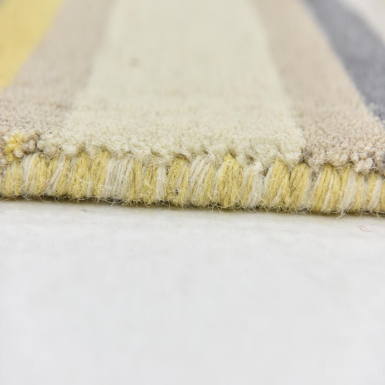 A 4x6 rectangular Luna rug featuring horizontal stripes in varying shades of yellow, grey, and cream.