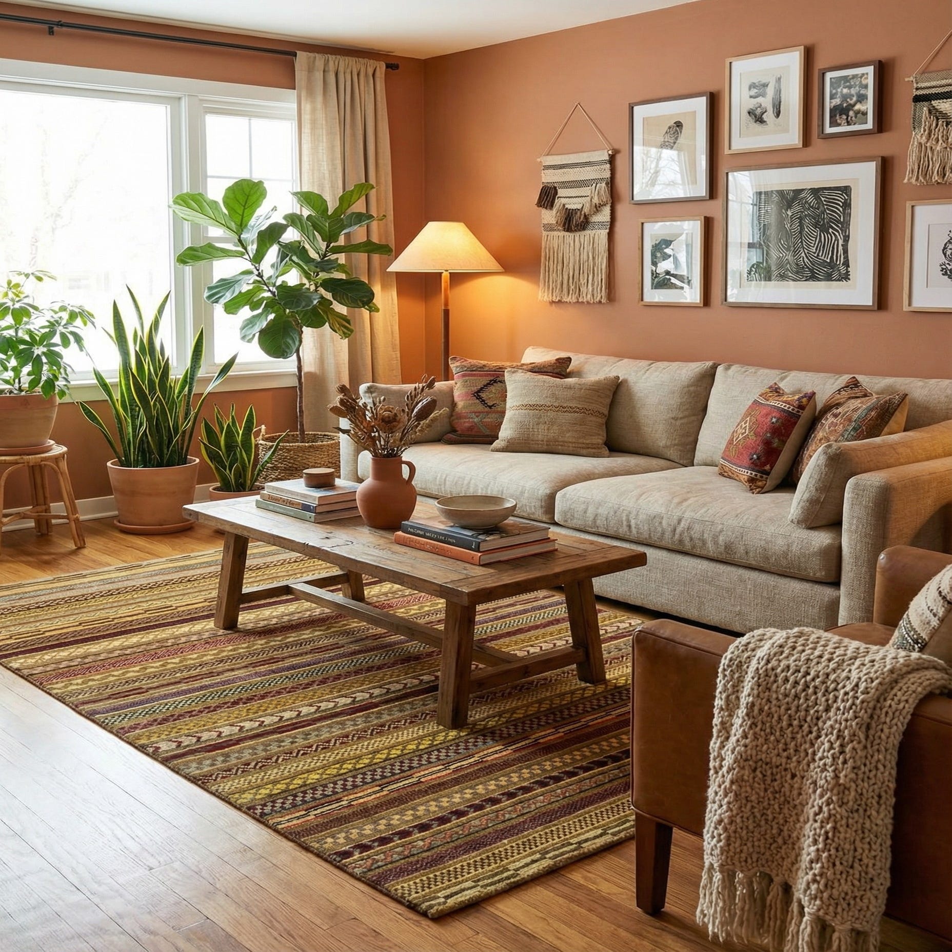Primary color is Multi. Colors in this rug include: Multi, Beige, Brown, Burgundy, Cream, Gold, Red, Tan, Green, Maroon, Peach.