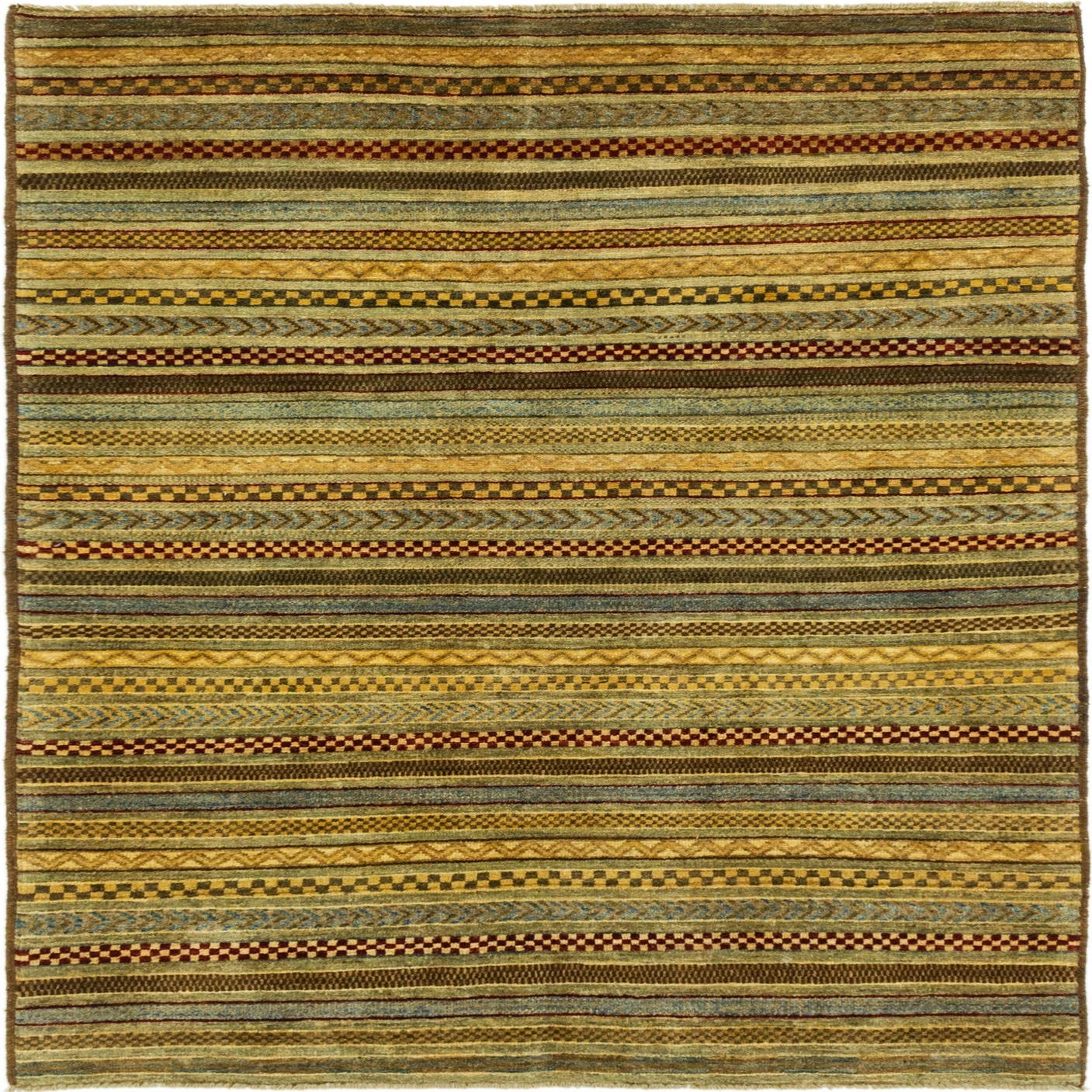 Primary color is Multi. Colors in this rug include: Multi, Black, Brown, Burgundy, Cream, Gold, Light Blue, Light Green, Olive.