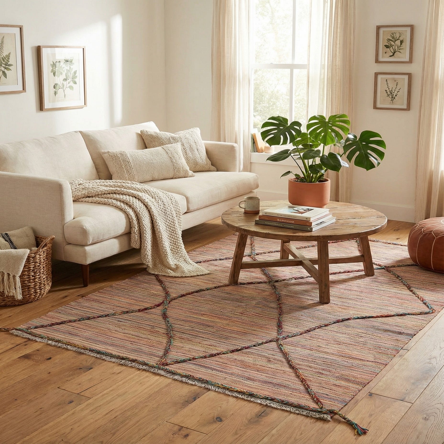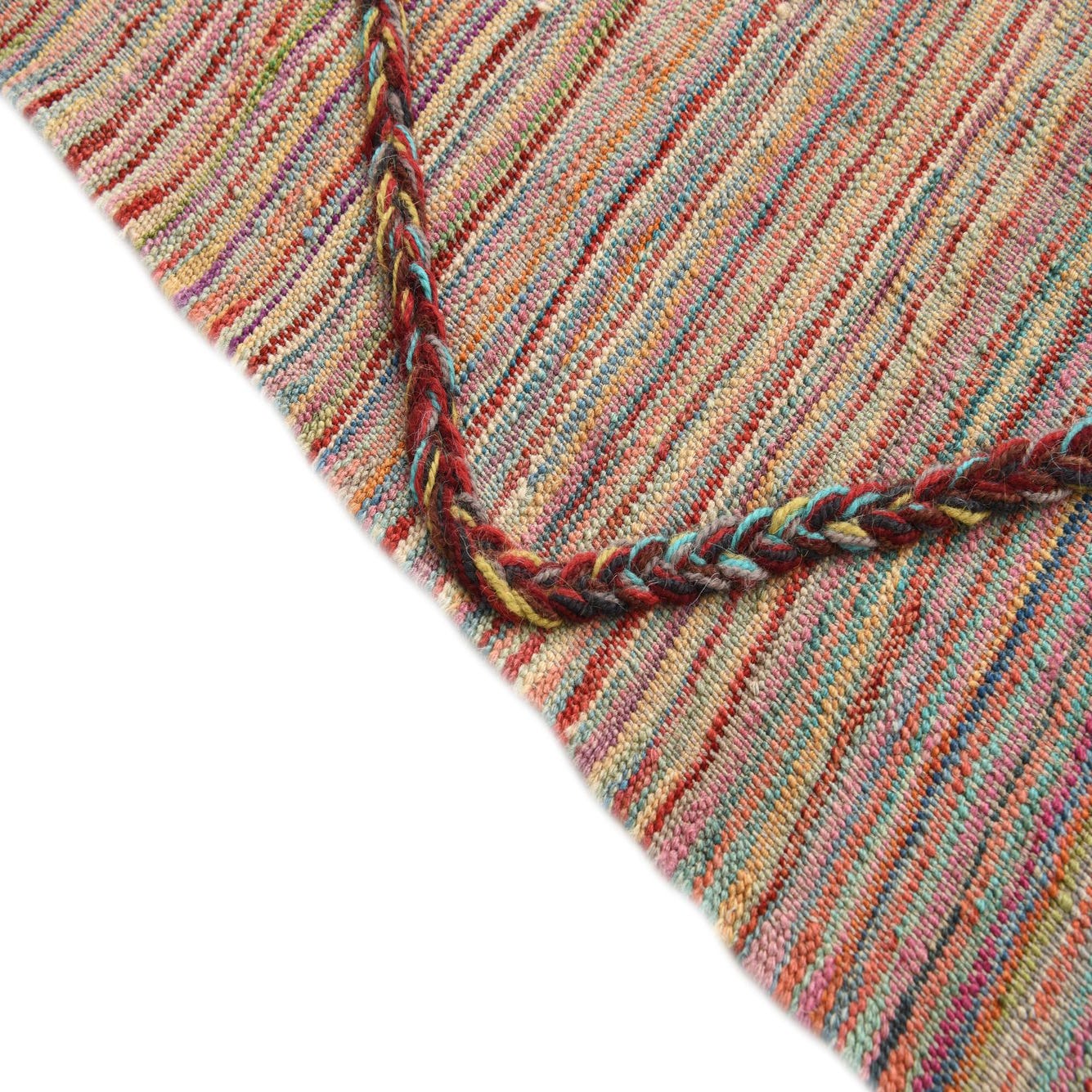 A 4x6 multi-colored rectangular wool shag rug with a braided diamond pattern, suitable for a living room.
