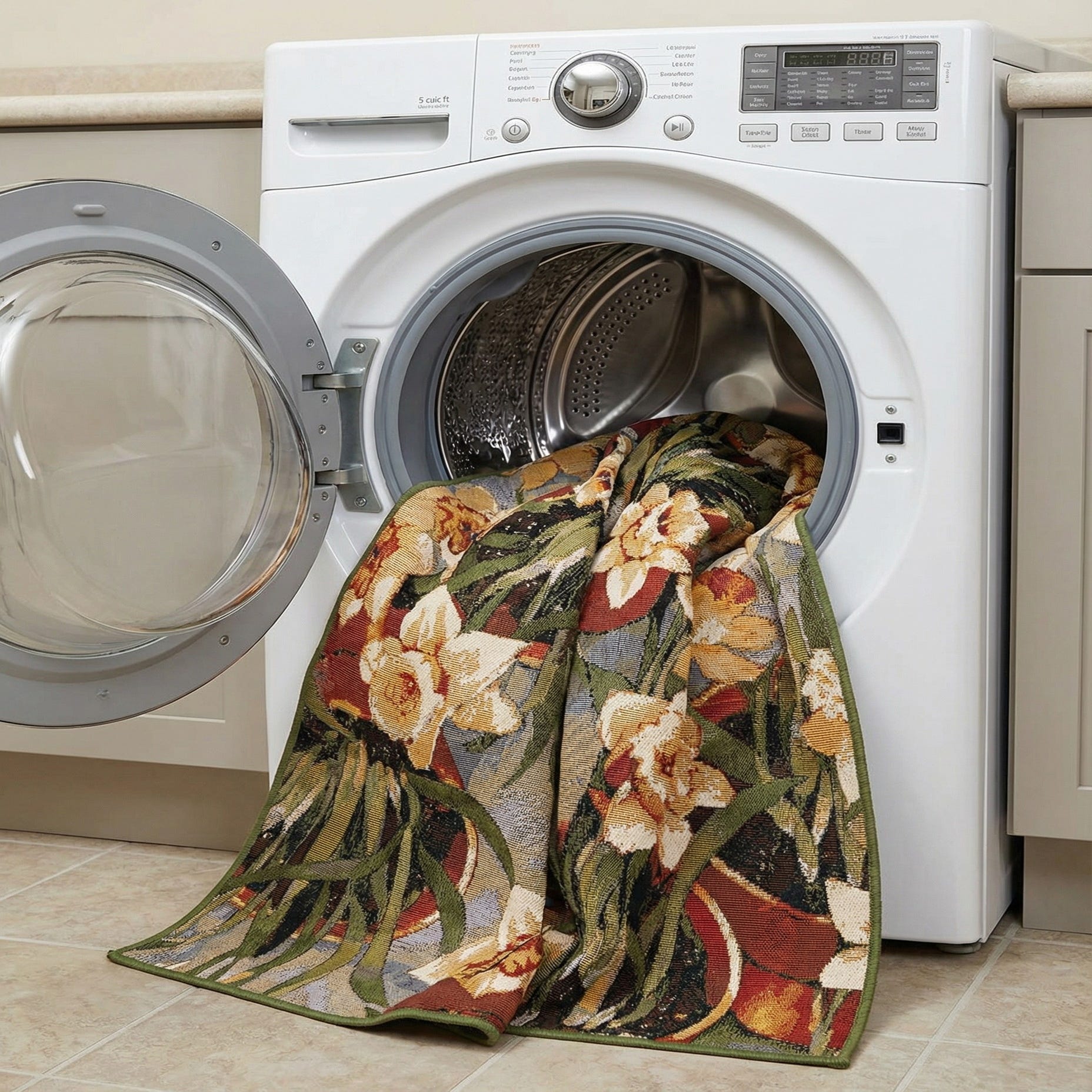 This piece works well in a covered patio or sunroom where a touch of garden color is welcome, and it also suits entryways, kitchens, or a small seating area to anchor a pair of chairs and a side table. Pair it with warm-wood furniture, rattan or wrought-iron accents, terracotta planters and olive-green textiles to reinforce the botanical feel, or layer it over a natural-fiber runner for added dimension.