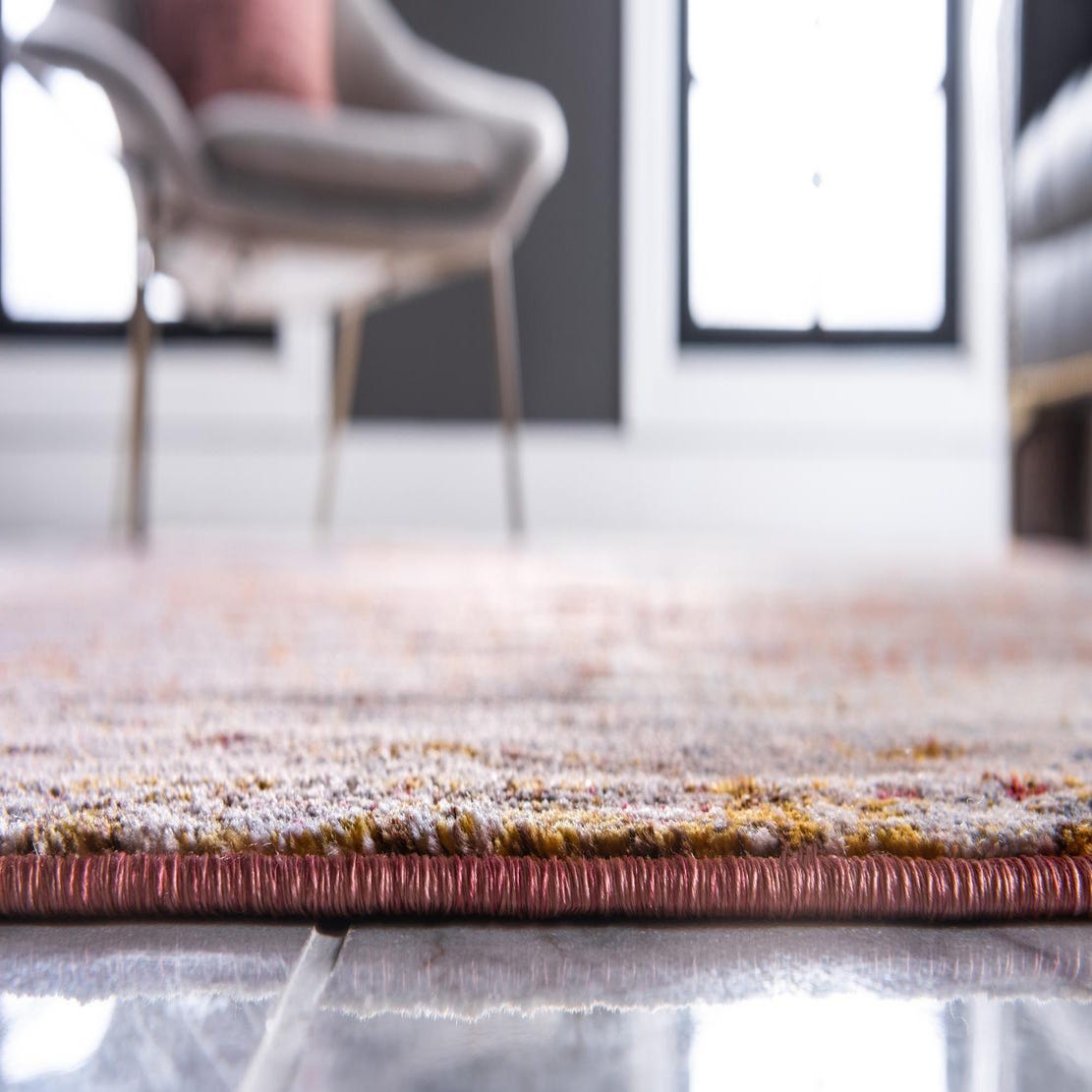 The rug’s versatile aesthetic bridges transitional, bohemian, and modern farmhouse styles, making it a strong choice for a cozy seating area, at the foot of a bed to warm a bedroom, or in an entryway to introduce pattern without overpowering the room. It pairs well with neutral upholstery and natural wood finishes, or with soft pastels and warm metallic accents that pick up the gold and salmon threads.