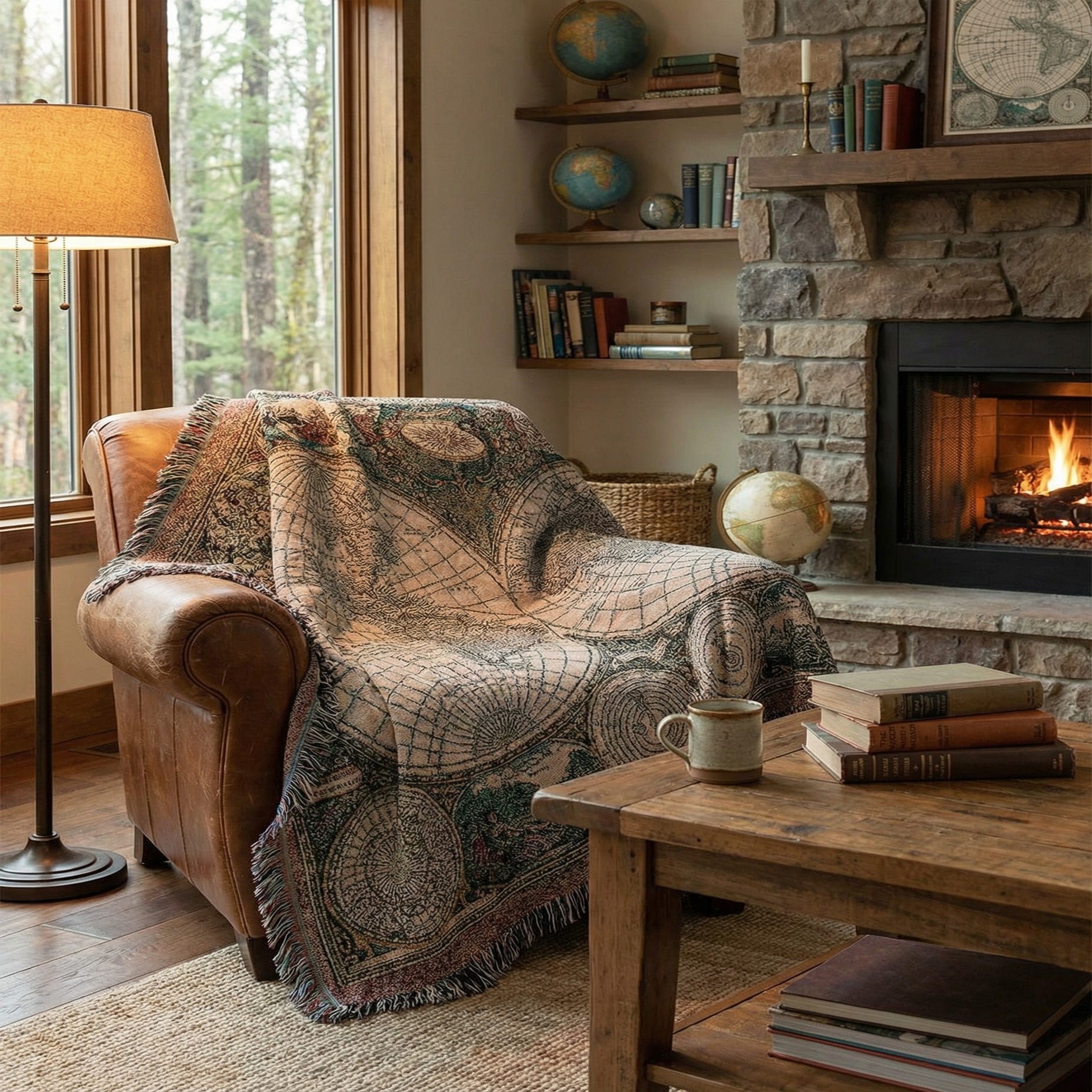 4' 6 x 6' Old World Map Throw Blanket