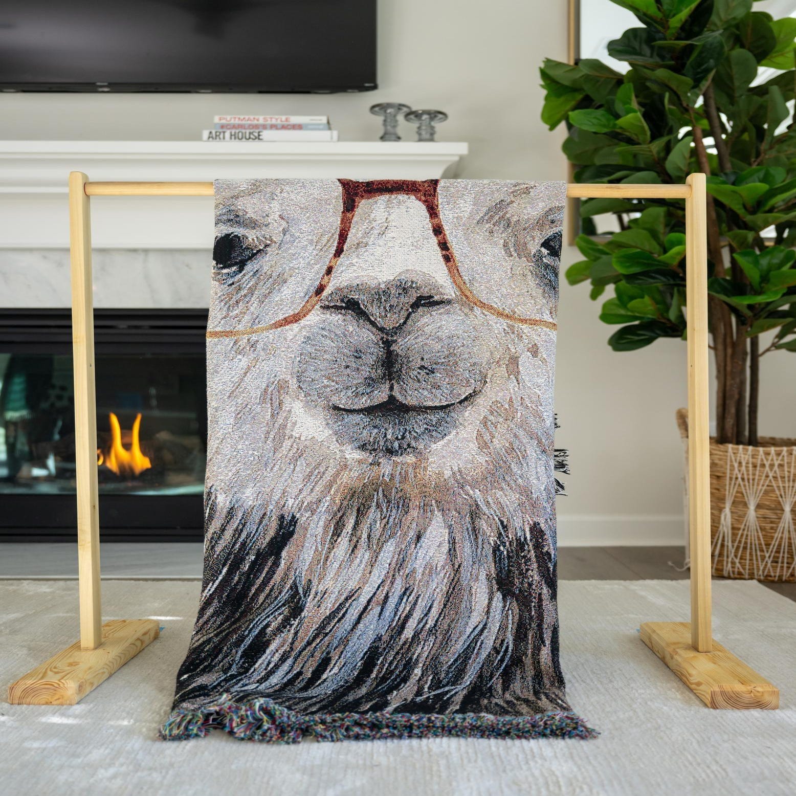 4' 6 x 6' Llama With Glasses Throw Throw Blanket