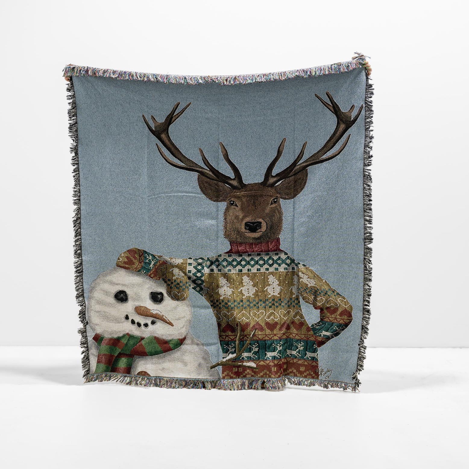 4' 6 x 6' Deer and Snowman Throw Blanket