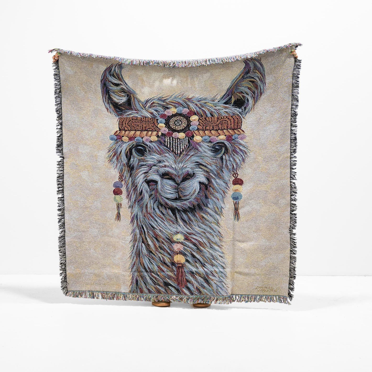 Detail image of 4' 6 x 6' Hippie Llama Throw Blanket