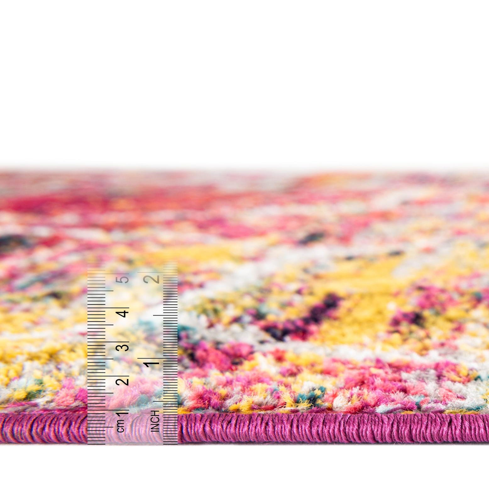 Machine-made from 100% polypropylene, the rug has a low-profile pile that feels softly cushioned underfoot and holds the pattern definition well. Its color-forward look works equally well as a focal point in a living room or seating area, a bright anchor for a home office or entryway, or a playful addition to a child’s room. Pair it with neutral upholstery and warm wood tones to let the colors pop, mix it into a mid-century modern scheme to echo geometric lines, or layer it over a larger neutral rug for a relaxed, collected vibe.