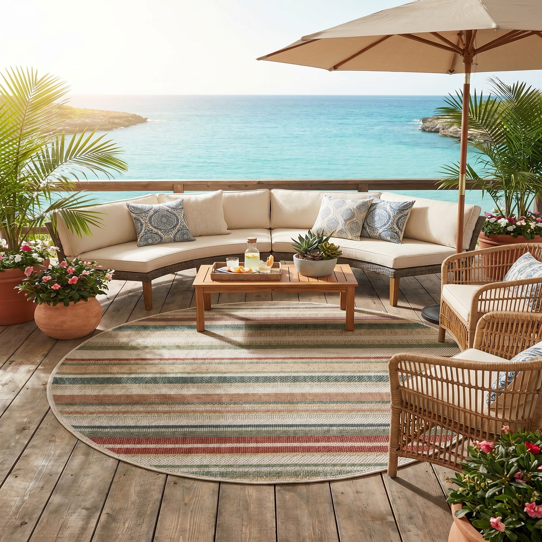 5' 3 x 5' 3 Easy-Clean Baja Indoor / Outdoor Round Rug