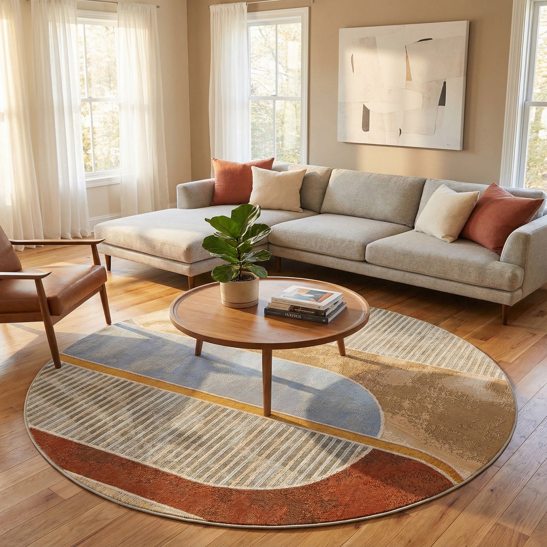 5' 3 x 5' 3 Washable Modern Indoor / Outdoor Round Rug